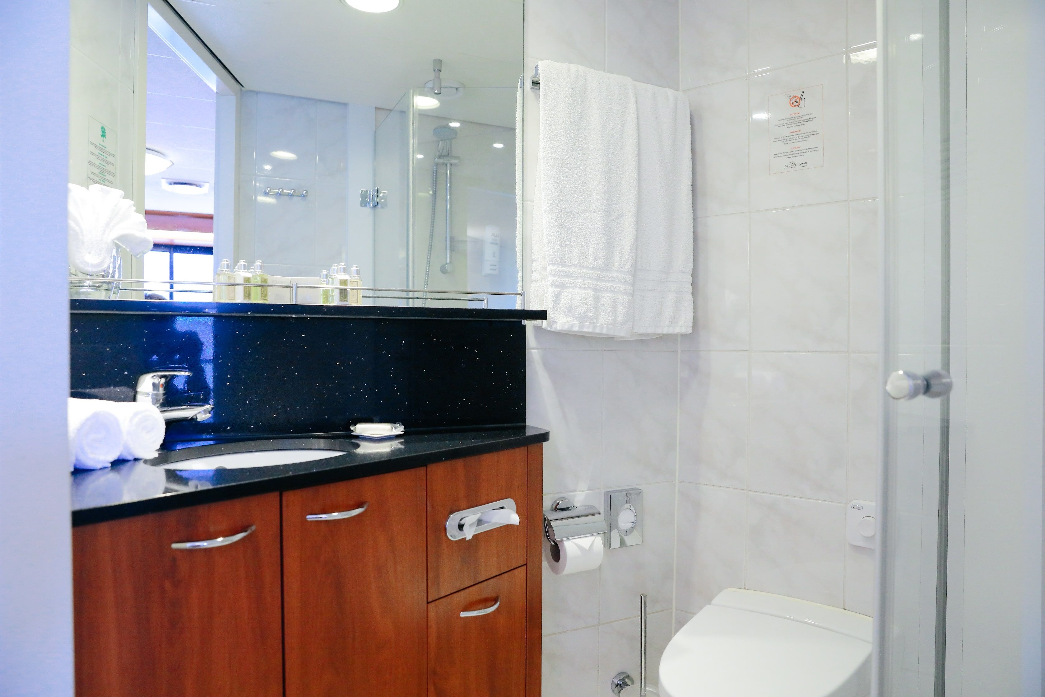 Каютите са с площ от 12.30 м2. Всички разполагат с индивидуален климатик, сателитна ТВ, сешоар, сейф, телефон, баня и тоалетна.