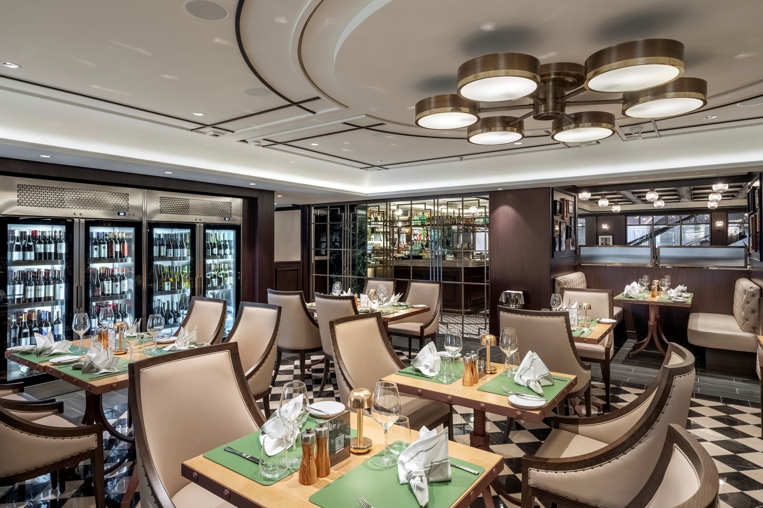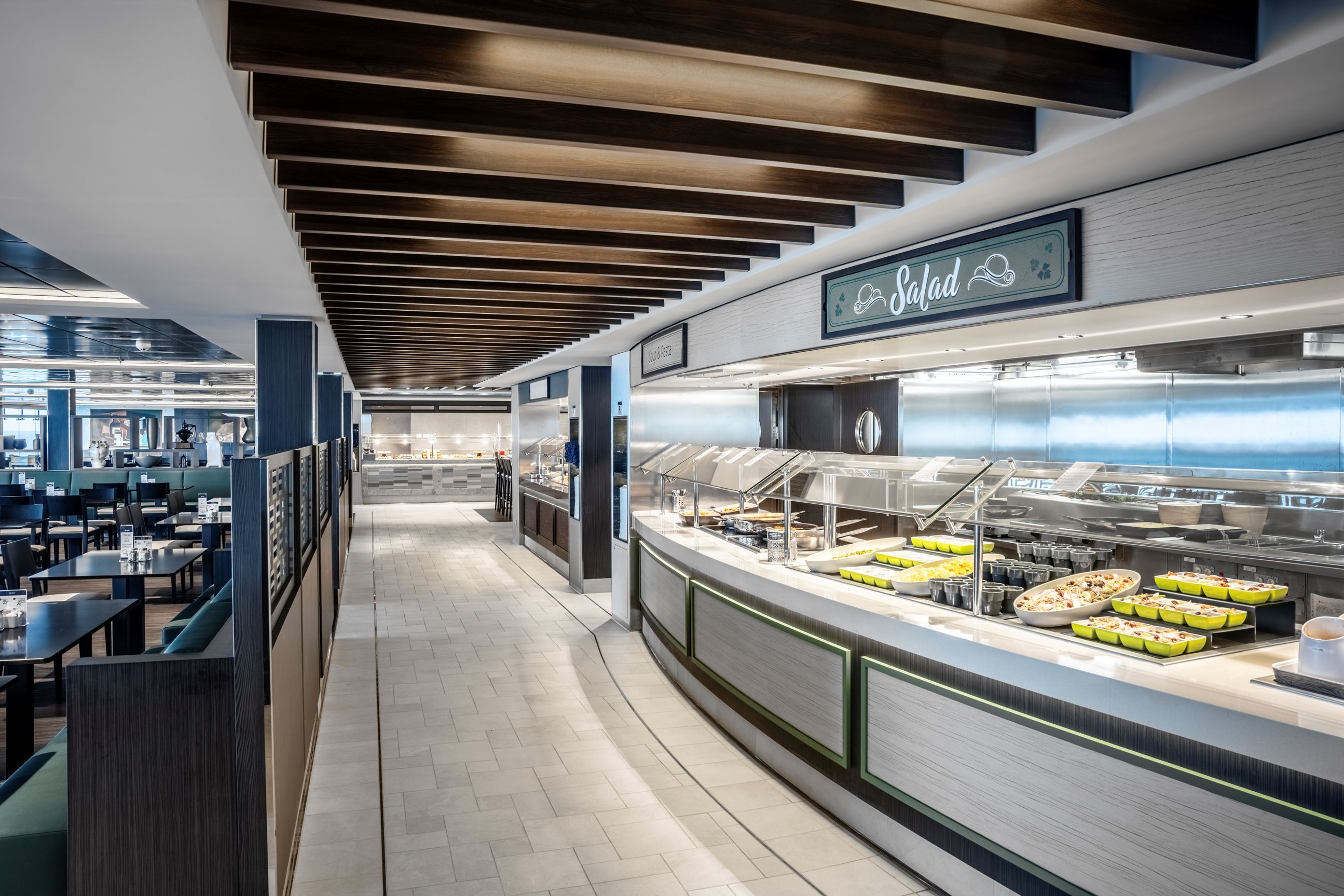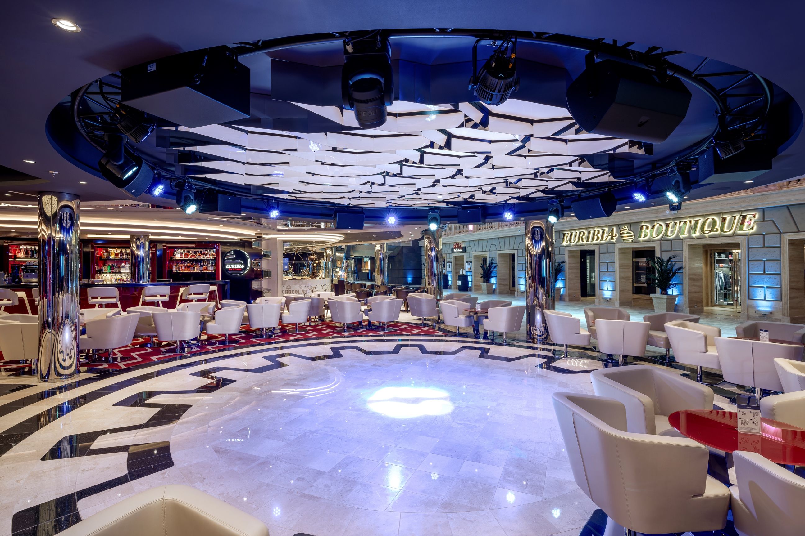 Класическата вече за корабите от флотилията вътрешна променада с LED таван, обградена от ресторанти и магазини, отново се превръща в център на социалния живот на борда, както и в сцена на различни партита и събития.