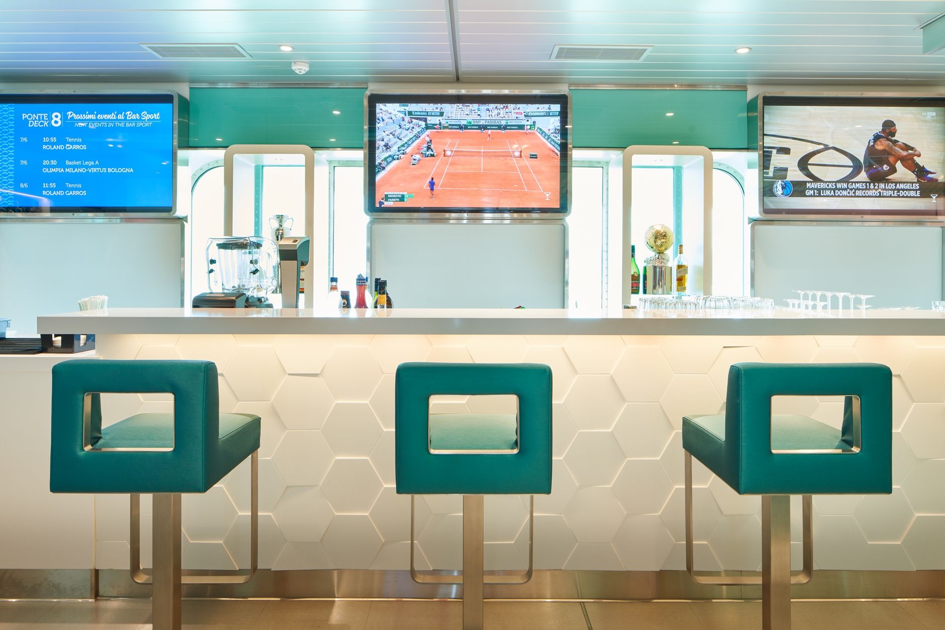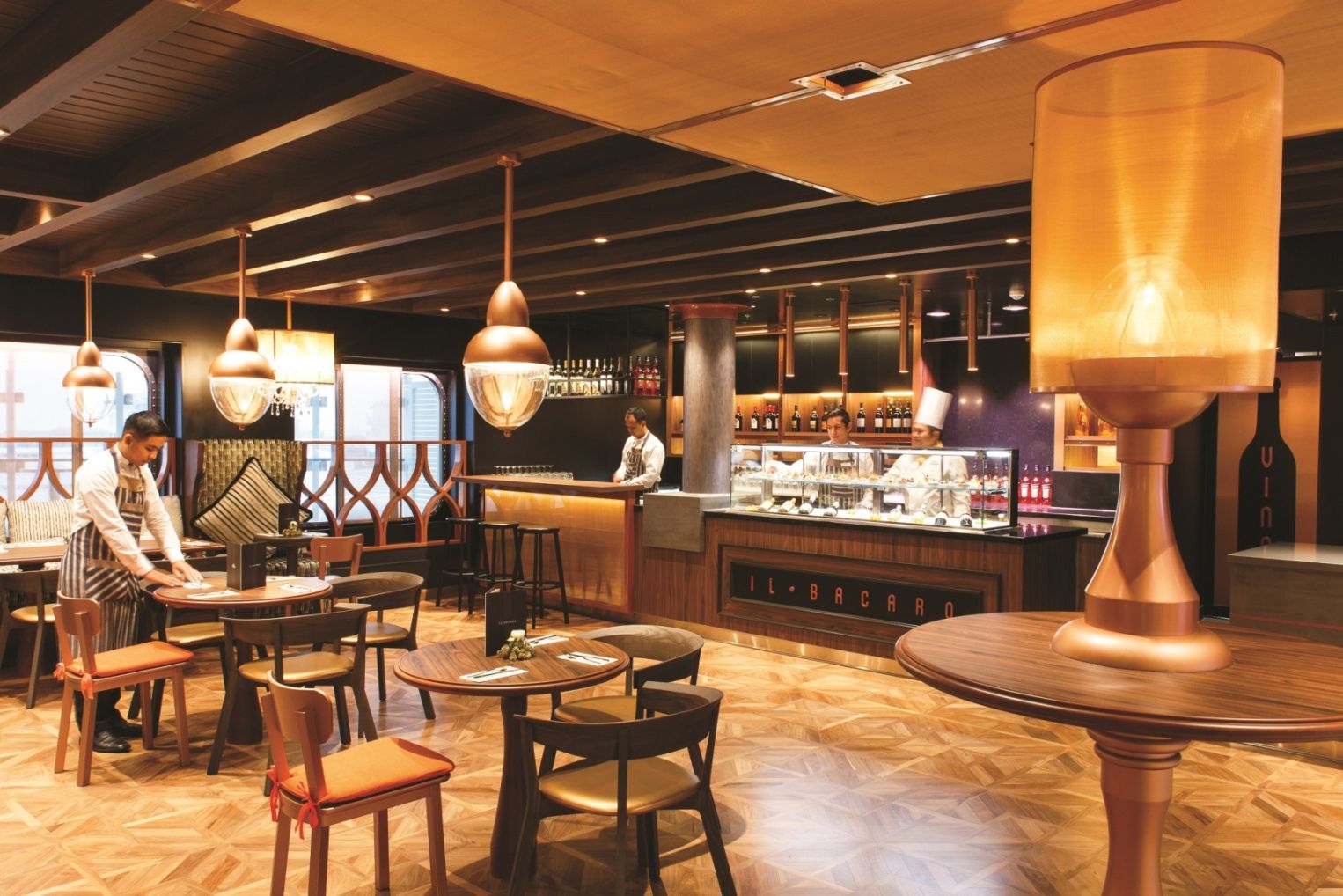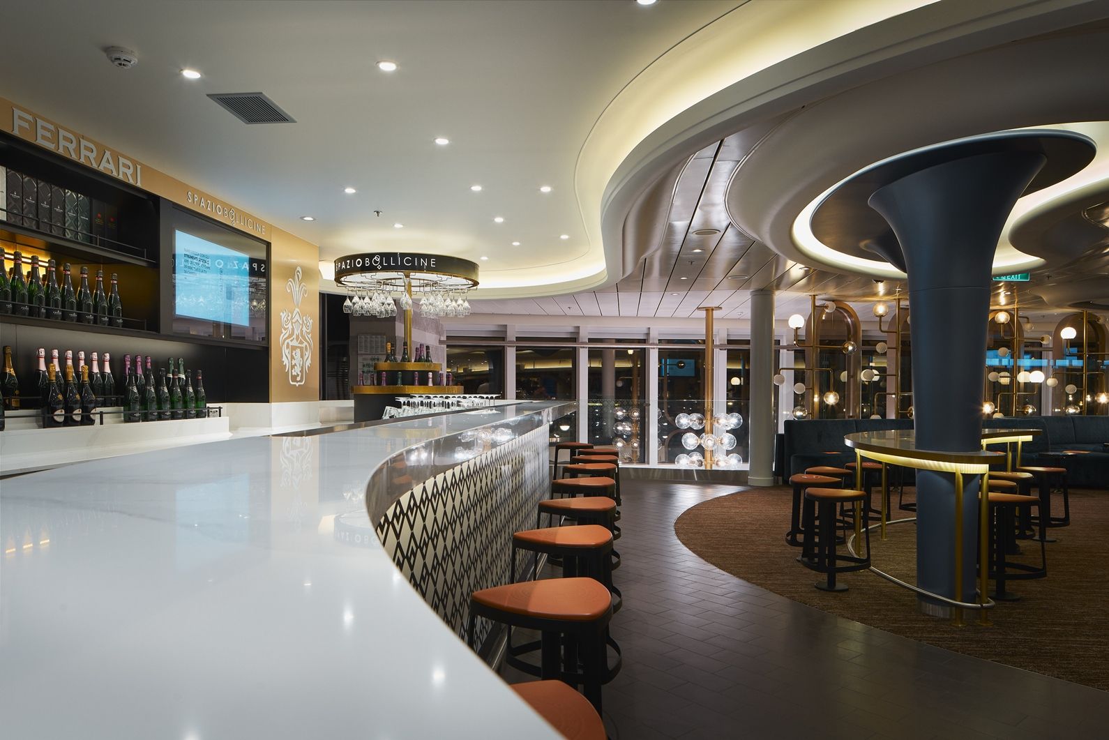 19 бара със различна атмосфера и гледка – намерете вашето кътче или опитвайте нещо ново всеки ден – Ferrari шампанско бар, Aperol Spritz bar, Campari bar, Bacaro Veneziano bar, джаз пиано бар или диско бар.