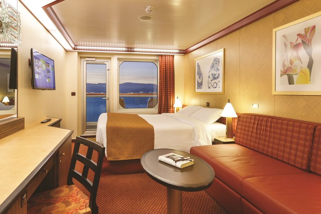 Каюти с балкон, каюти с прозорец / не се отваря /, вътрешни каюти, каюти за инвалиди. Всички с интерактивна ТВ, телефон, сейф, минибар, климатик, интернет срещу заплащане.