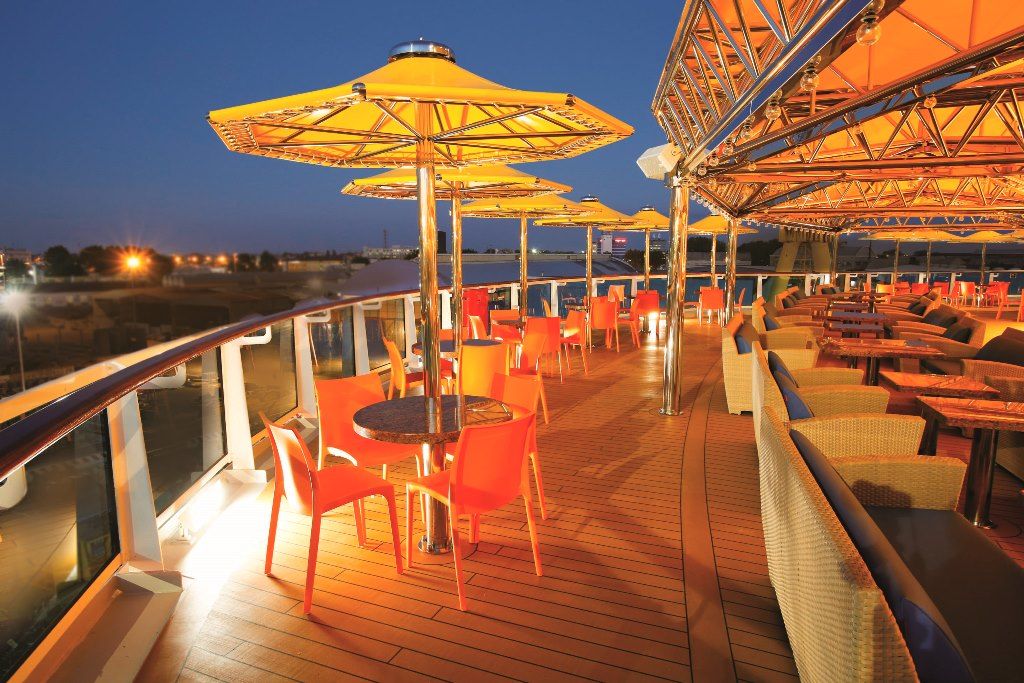 - Използване на съоръженията на кораба като плувен басейн, шезлонги, фитнес, нощен клуб, кърпи за плаж;