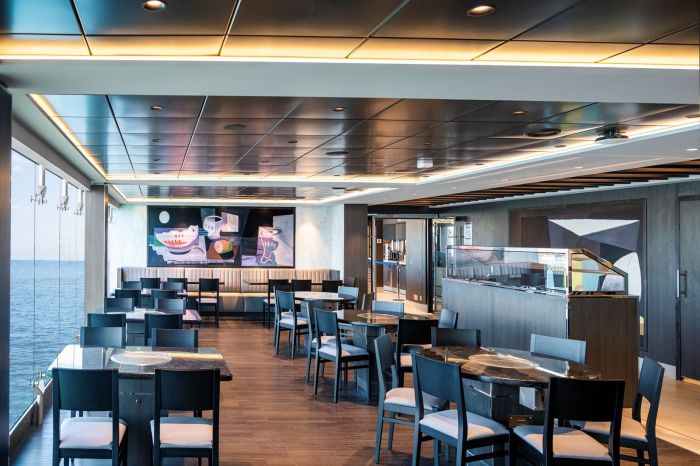 Класическата вече за корабите от флотилията вътрешна променада с LED таван, обградена от ресторанти и магазини, отново се превръща в център на социалния живот на борда, както и в сцена на различни партита и събития.