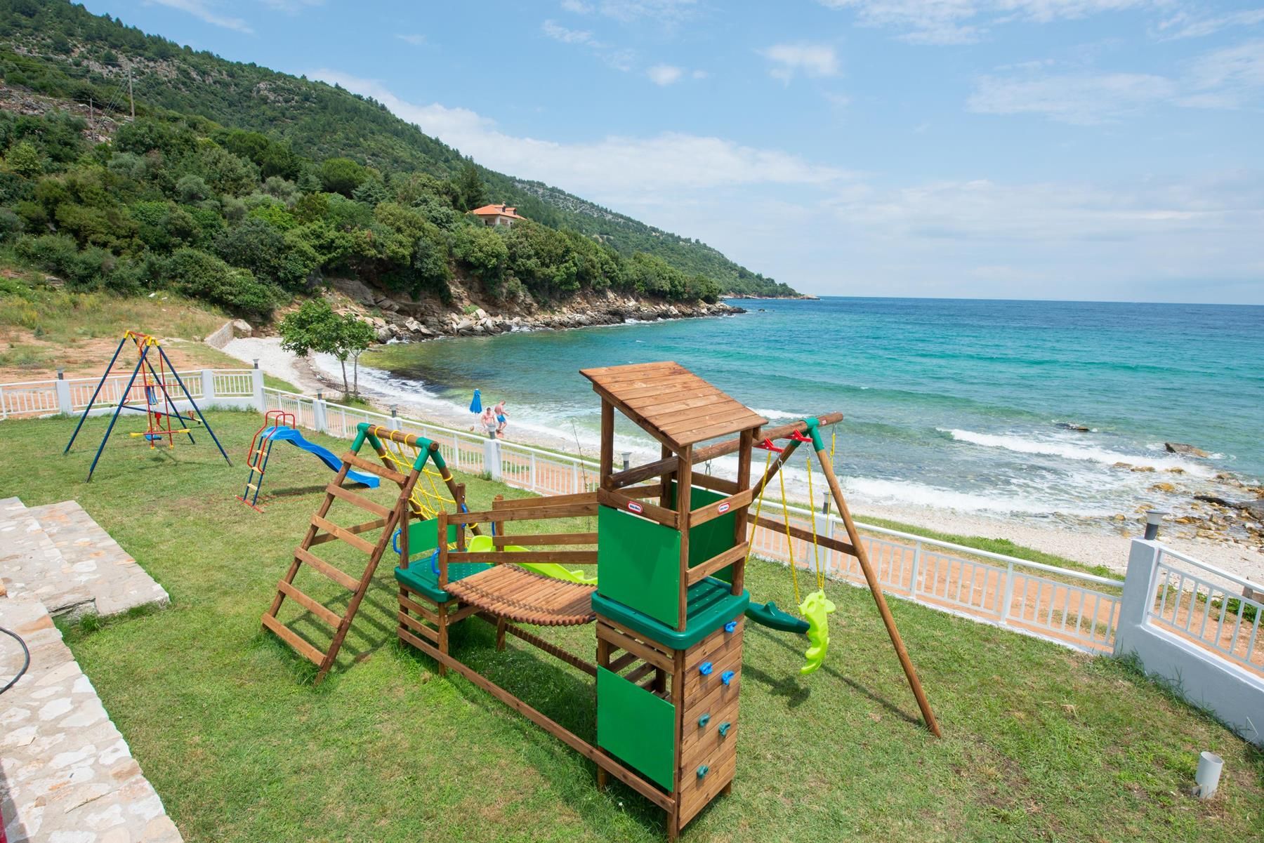 Този хотел с морска гледка на Тасос предлага също басейн за възрастни с панорамна гледка към морето и бар край басейна, ресторант на бюфет, уютна зона за почивка, както и плаж с бели обли камъчета, разположен непосредствено до хотела.