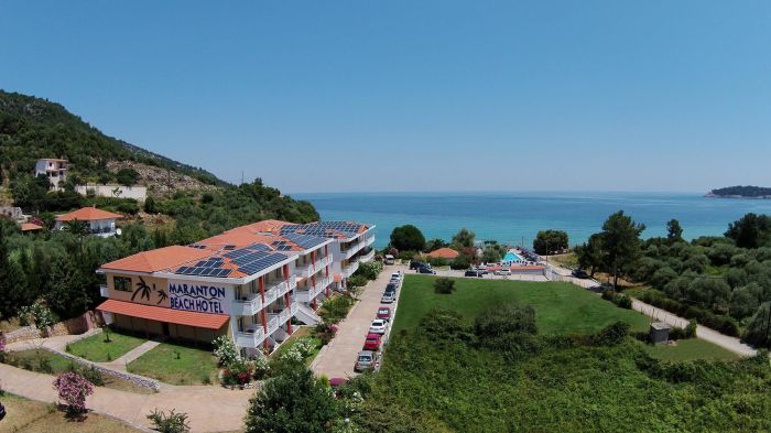 Maranton Beach Hotel е семеен хотел на остров Тасос, разположен сред златното слънце на Егейско море, свежата зеленина на планината Ипсарион и безкрайната морска шир, предлагащ модерно настаняване и впечатляващи панорамни гледки към морето и красивата природа на острова.