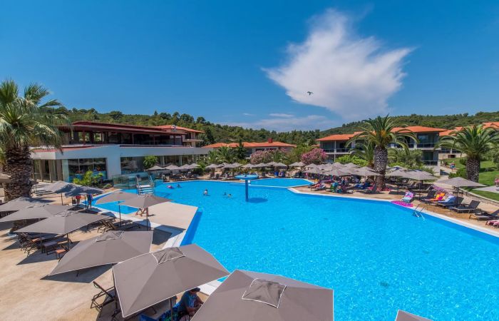 Комплексът се намира в района на Неос Мармарас, Халкидики, заобиколен от живописни пейзажи и морски гледки, създавайки отлични условия за спокойствие и релакс. Със своите разнообразни удобства и услуги, хотелът предлага комфортна и безгрижна ваканция, съчетаваща модерни удобства и приятно обслужване.
