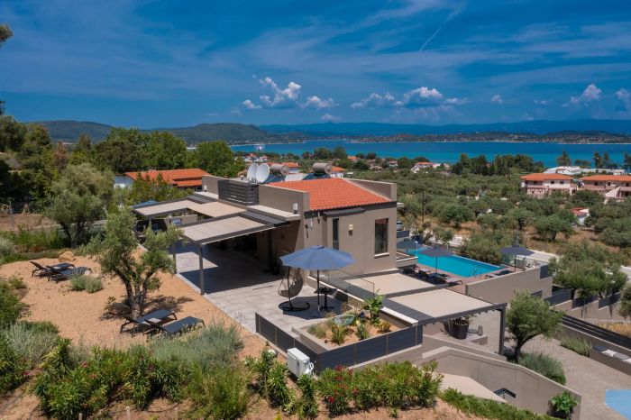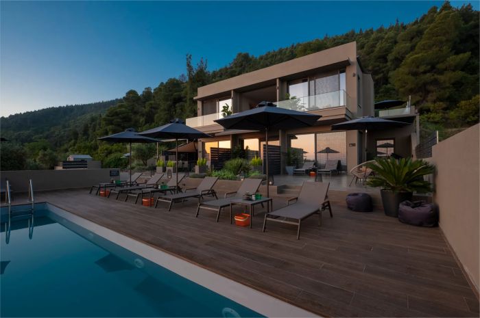 Комплексът впечатлява с модерна минималистична архитектура, която се вписва хармонично в природната среда на Вурвуру, Халкидики.