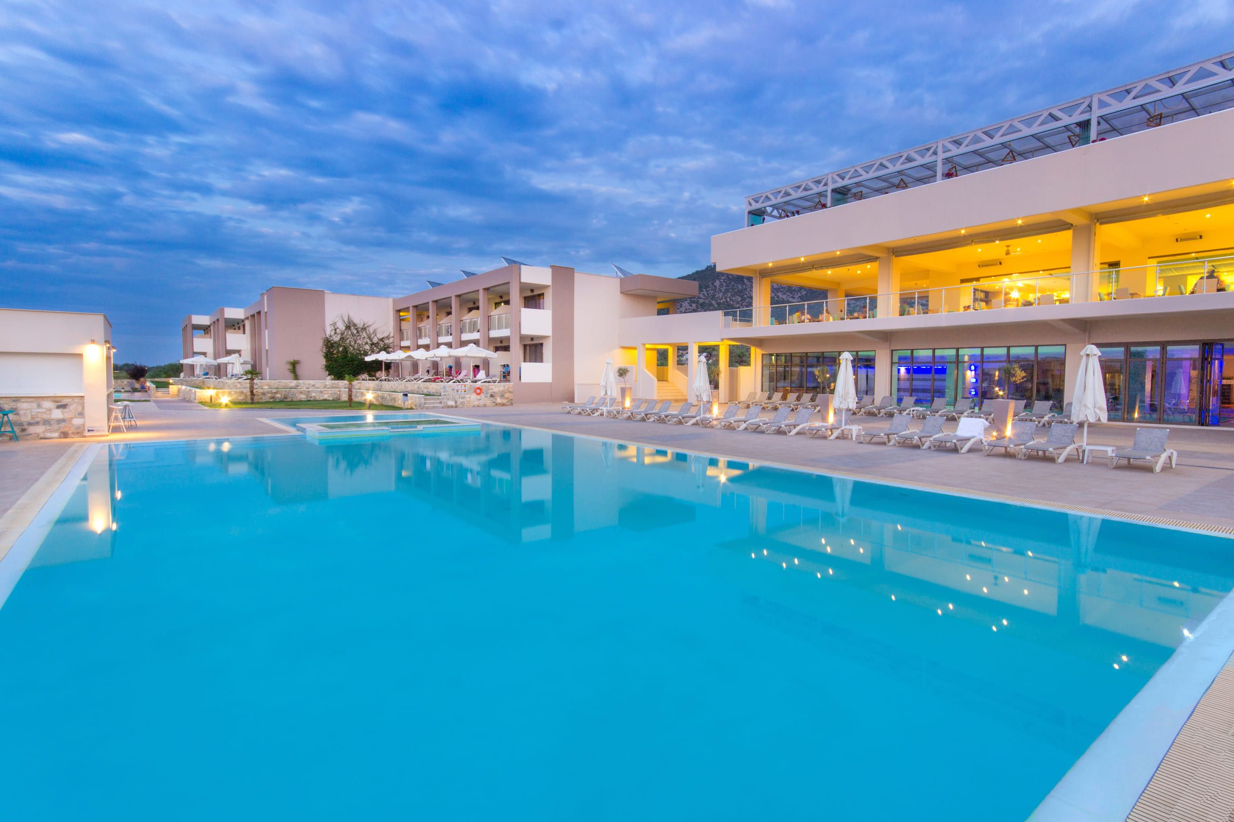 2 открити басейна, фитнес център, СПА зона, вътрешен басейн, джакузи и хамам, игрище за плажен волейбол, безплатен Wi-Fi във всички части на хотела.