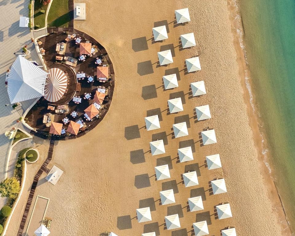 Плаж: Частен пясъчен плаж на 10 метра от хотела, на първа линия до плажа. Чадъри и шезлонги са безплатни.