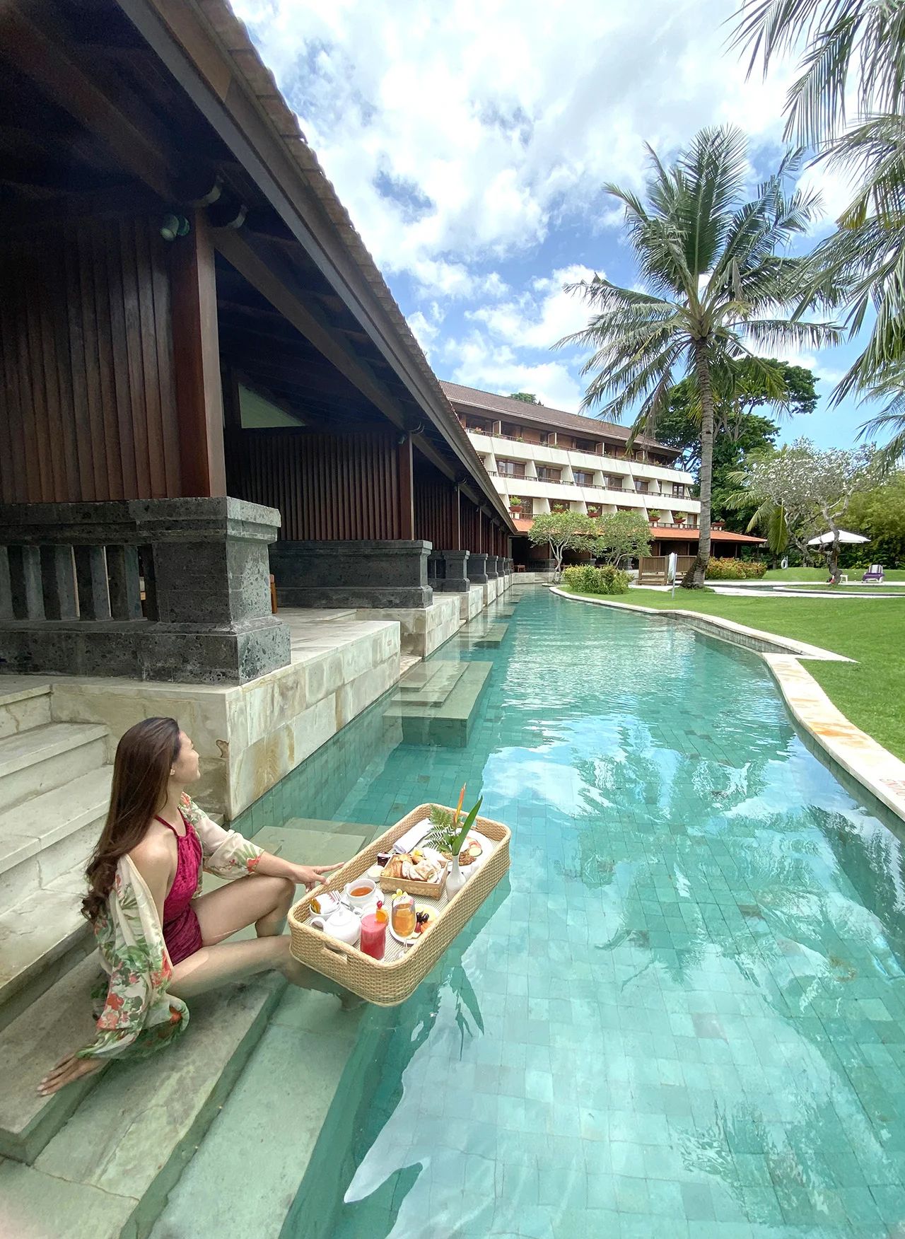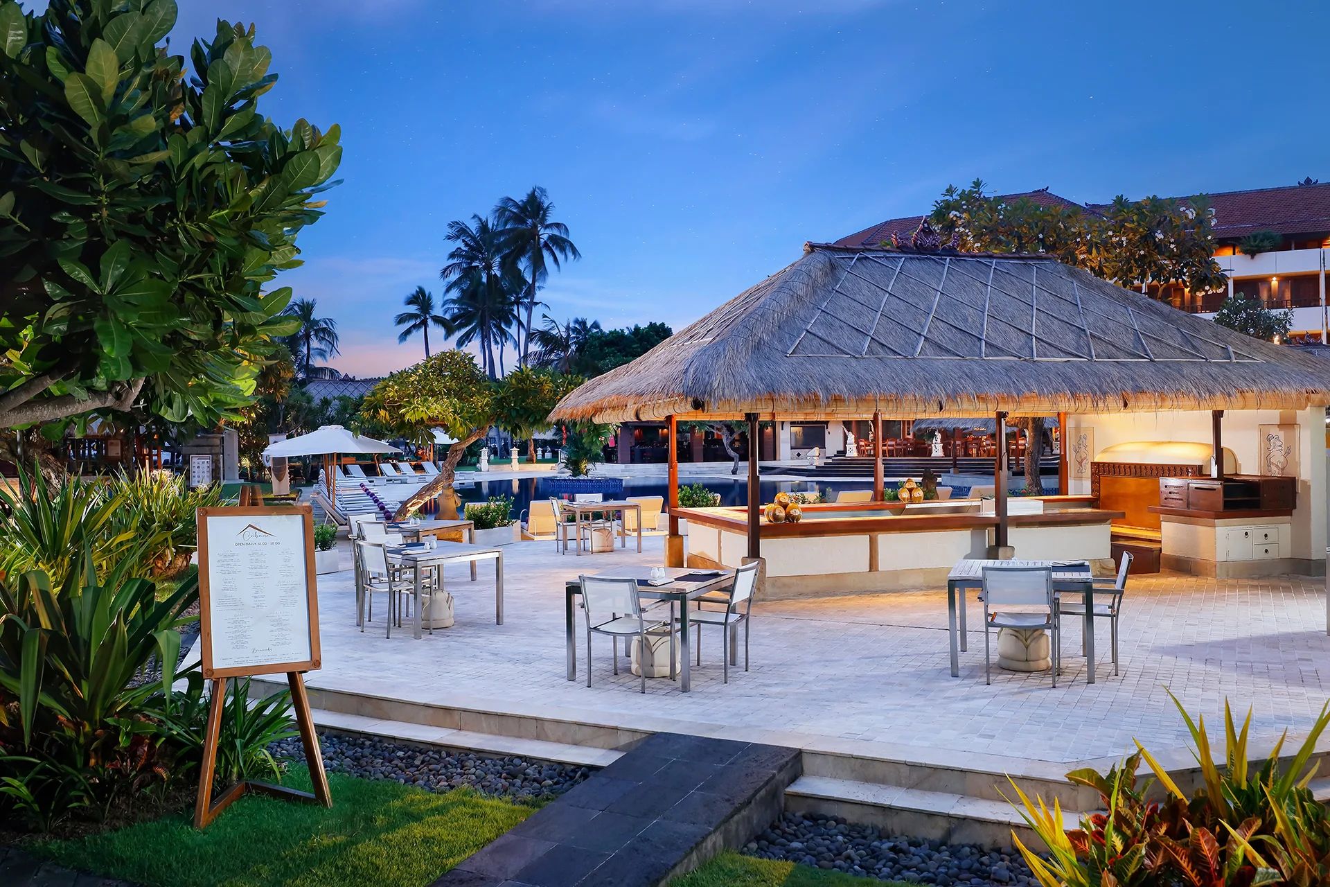 Курортът разполага с 3 открити басейна и директен достъп до плажа. Той наподобява балийски дворец и предлага пълно оборудван спа център, 5 ресторанта и 3 бара, конферентни зали и открит театър.
