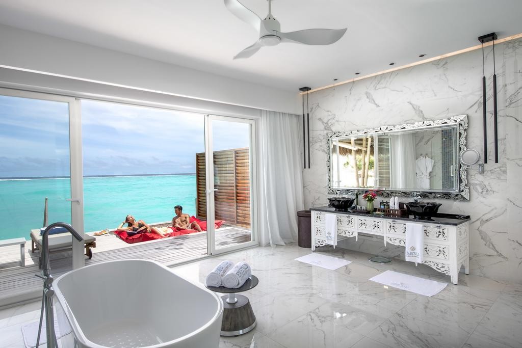 В стаите: Хотелът предлага над 120 прекрасни и луксозно обзаведени вили на брега или над водата. Всяка вила разполага със собствен басейн или джакузи. В дворното пространсво има открита баня. Всички вили са модерно обзаведени с всичко необходимо за една луксозна почивка: два плоски телевизора (в стая и баня), телефон с директно избиране, двойно легло, свързани стаи, модерни климатизирани бани с душ кабина, външен душ „под звездите“, вана за двама, отделна тоалетна и биде, съблекалня и гардероб, сешоар, халати, личен сейф, съоръжения за приготвяне на чай и кафе, ежедневно освежен минибар, обслужване на камериерка два пъти дневно, климатик, контролиран от стаята, вентилатори, работно бюро и Wi-Fi интернет достъп, който ще бъде на разположение и в целия курорт.