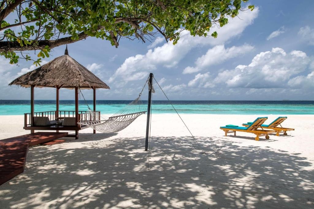 Хотелът на живописен малък остров, заобиколен от коралов риф, е известен с безупречното си обслужване и е най-добрият вариант за романтично бягство. Всички вили разполагат с частни басейни и джакузи.