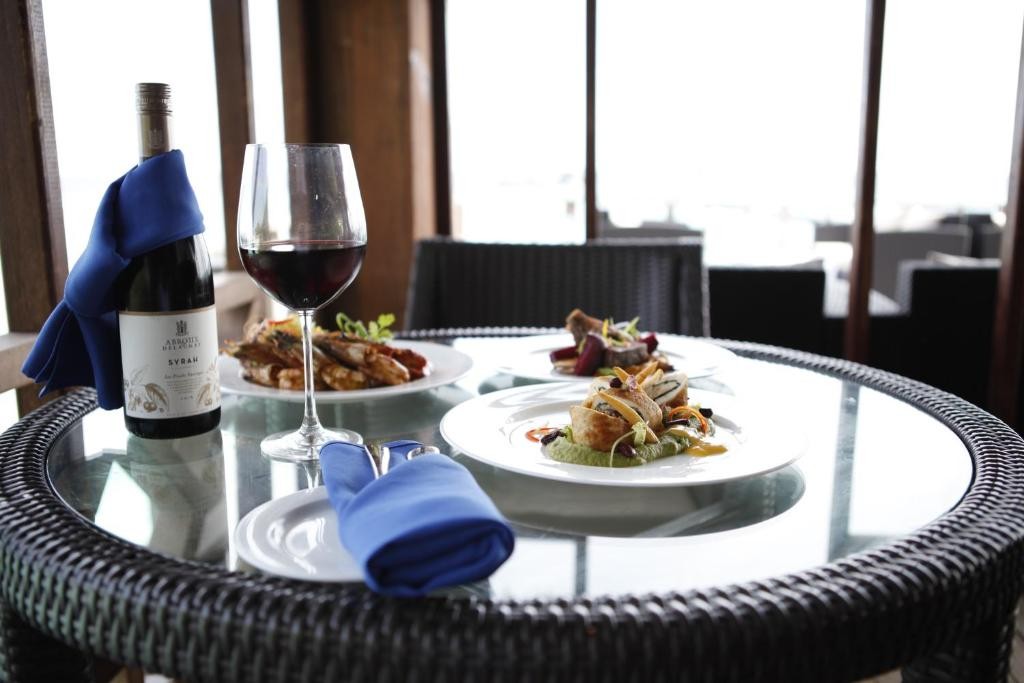 На територията на хотела: Хотелът разполага с открит отопляем басейн, основен ресторант Mela с бюфет, ресторант Blitz по меню, основен бар и бар на плажа. Безплатен Wi-Fi е наличен в целия хотел. Хотелът разполага също с пералня и конферентна зала от 24 кв. м.