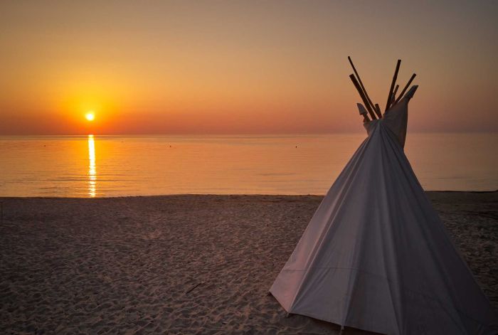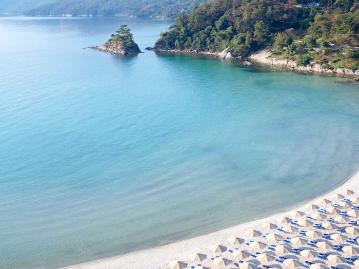 Плажът, отличен със Син флаг, е идеалното място за плуване в кристално чисти води. За най-малките плиткото, пясъчно морско дъно е идеално за първа среща с морето. Потопете се за кратко и се отпуснете на шезлонга си или се отправете към малкото островче и вижте колко морски раковини можете да откриете.