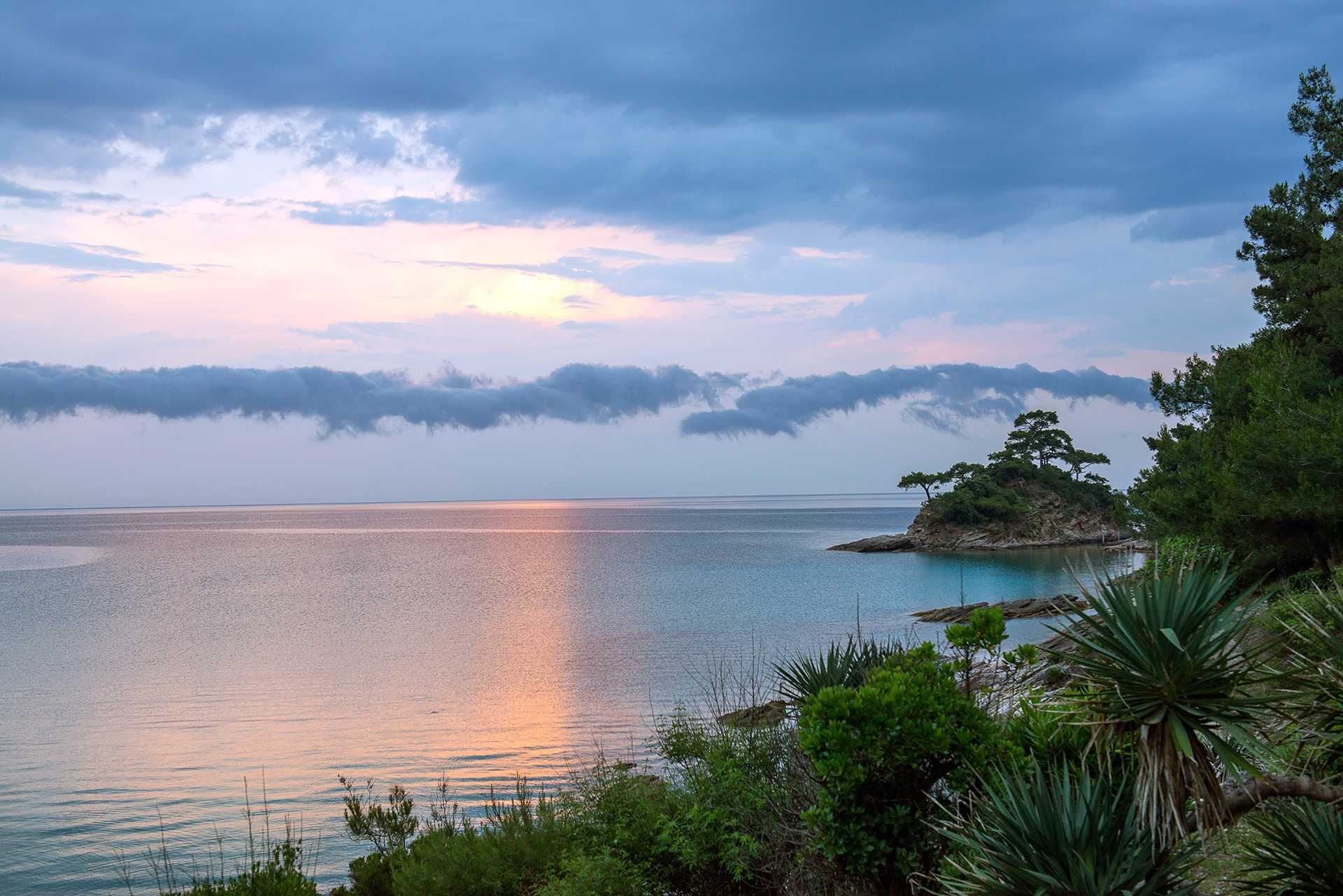 Привечер, когато слънцето вече е залязло, погледнете към небето и морето, които сякаш се сливат в една виолетова симфония от цветове.