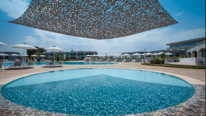 - Няколко басейна и слънчеви тераси, джакузи и водни струи