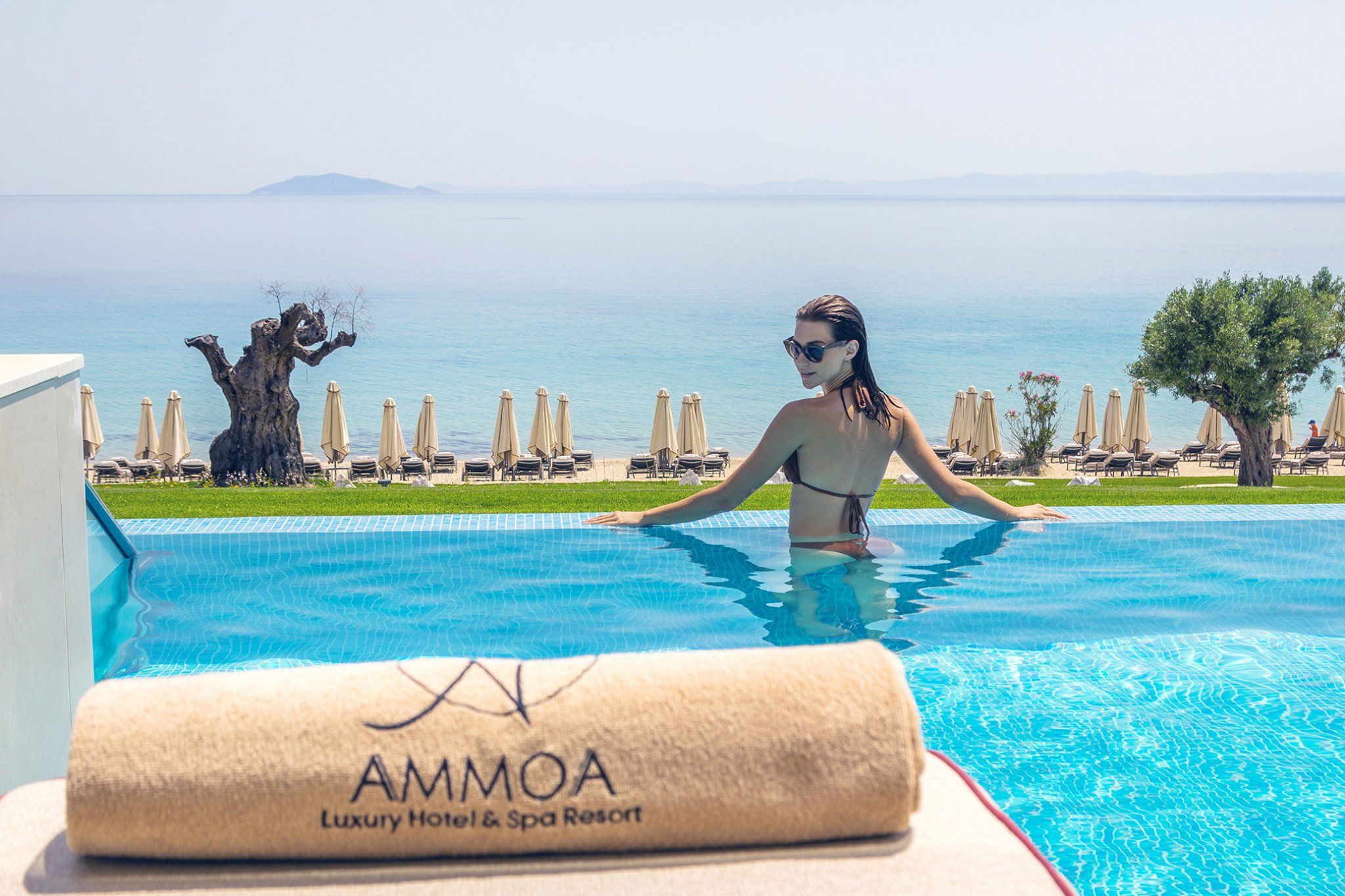 AMMOA Luxury Hotel & Spa Resort е изискан 5-звезден луксозен хотел в Халкидики, разположен директно на пясъчния плаж Агиос Йоанис. Съчетавайки първокласно обслужване, модерна архитектура и вдъхновяваща природна среда, курортът е идеалният избор както за романтична почивка, така и за бизнес пътувания и специални събития.