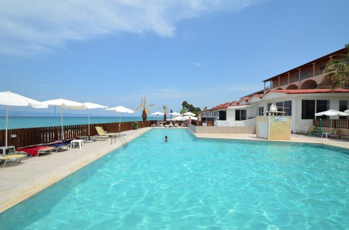 Гостите могат да се насладят на открит басейн с детска секция, свързана с основния басейн, както и на удобни шезлонги за релакс. Богата закуска на бюфет се сервира в ресторанта, а през деня са на разположение бар, pool бар и плажен бар точно пред хотела – без необходимост от пресичане на улица.