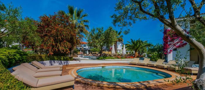 Хотелът разполага с открит басейн, а за най-малките гости са осигурени детски басейн и площадка, което го прави подходящ и за семейства с деца. Удобното разположение, в близост до автобусна спирка и на около 100 км от летище Солун, улеснява достъпа и придвижването в района.