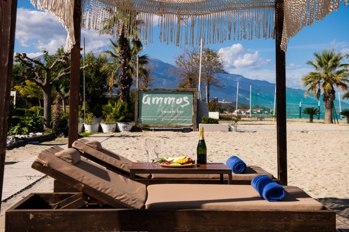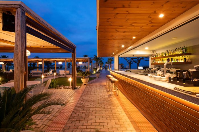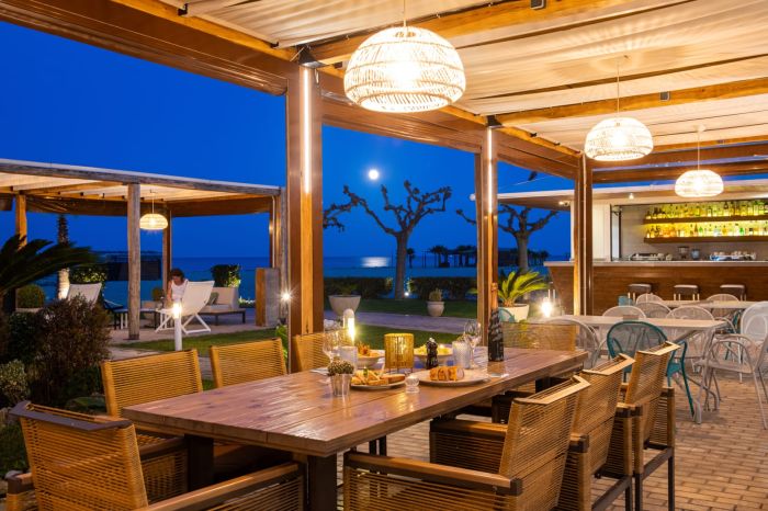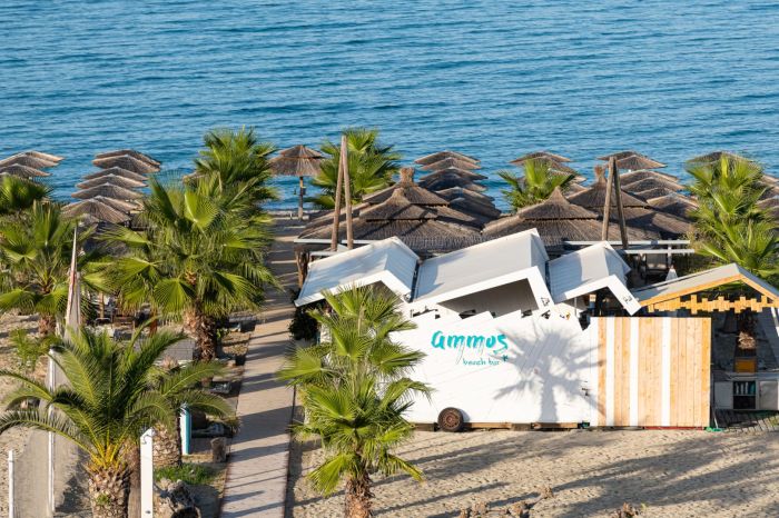 Гостите могат да се насладят на спокойствие и релакс в Ammos Beach Bar с освежаващи напитки, както и на разнообразна кухня в ресторант Akti, съчетаваща средиземноморски вкусове с модерни кулинарни идеи.