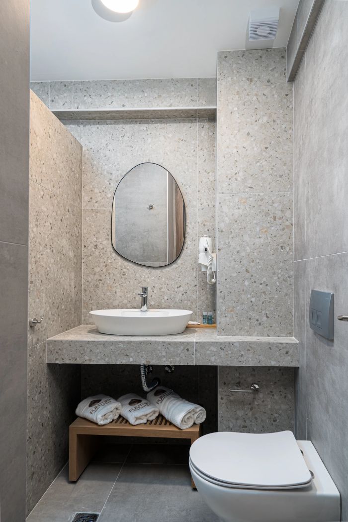 Апартаментите са създадени в съвременен стил с изчистени линии, естествени цветове и еко насочена концепция, които създават усещане за хармония и комфорт. Мястото е подходящо както за семейства, така и за гости, търсещи спокойствие и възможности за опознаване на района.