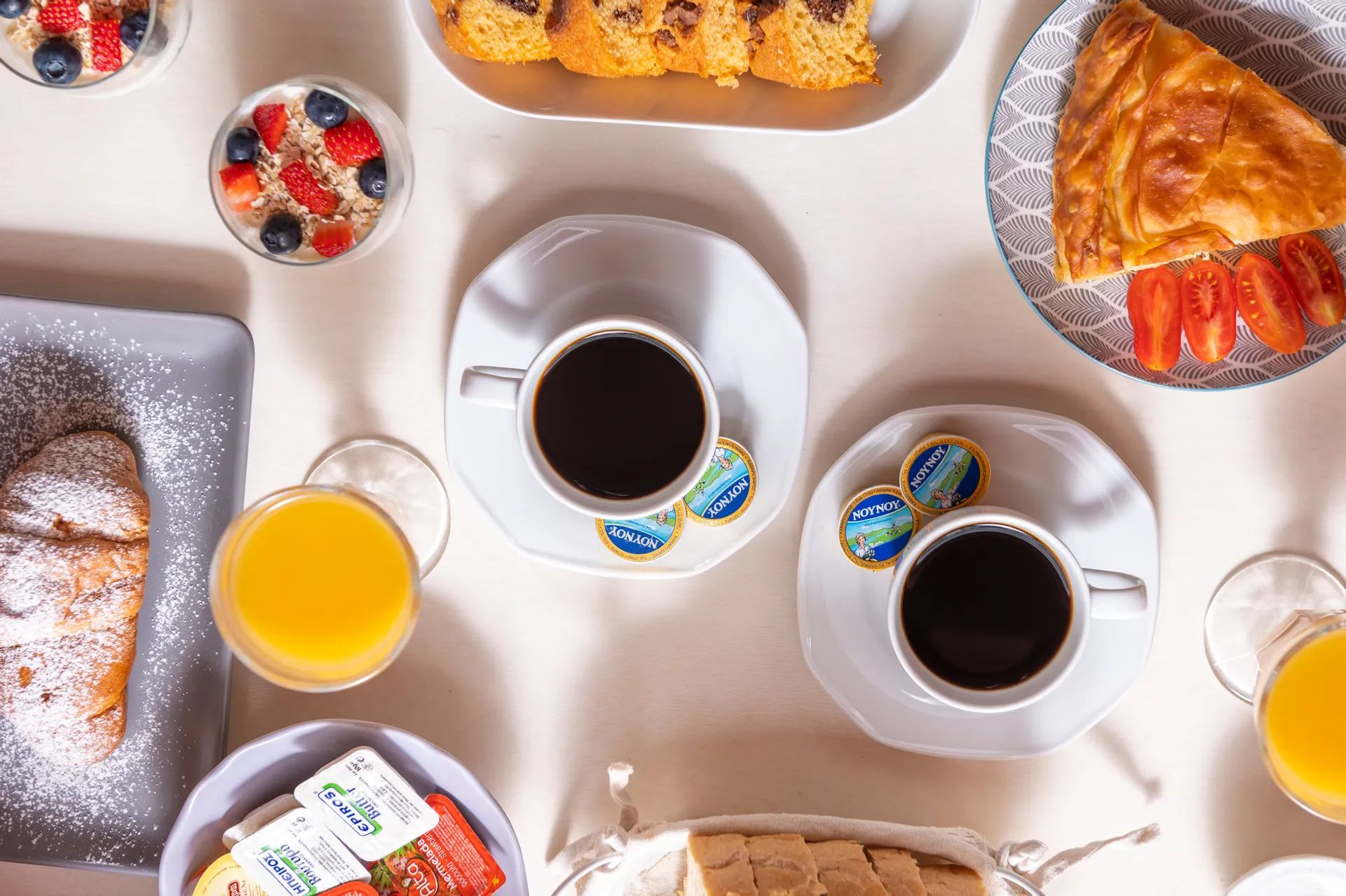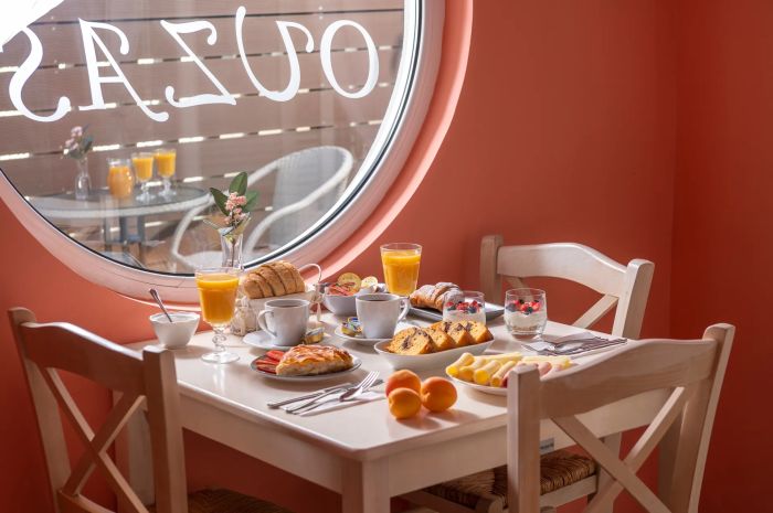 Гостите могат да се насладят на богата закуска с висококачествени местни продукти, както и на вкусни домашно приготвени ястия от гръцката и средиземноморската кухня в ресторанта на хотела.