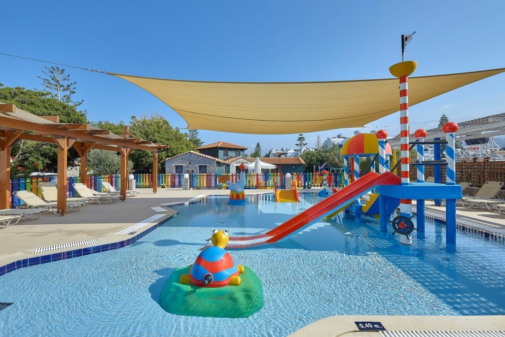 За децата: За деца от 4 до 12 години, нашият комплекс предлага разнообразие от забавления и дейности. Шестдневният детски клуб е отворен два пъти дневно: от 10:00 до 12:00 и от 15:00 до 17:30. Разполагаме и с открит неотопляем сладководен басейн с площ 50 м² и дълбочина от 30 до 50 см, който е отворен за посетители от 10:00 до 18:00 часа. За децата има открита детска площадка с ограда и пясъчна повърхност. Детски дискотеки се провеждат всяка седмица. При поискване се предлагат кошара (кошарка), количка за бебета, стерилизатор за шишета, бебефон и нагревател за шишета. Ресторантът разполага с високи столчета, а бебешка вана се предлага при поискване.
