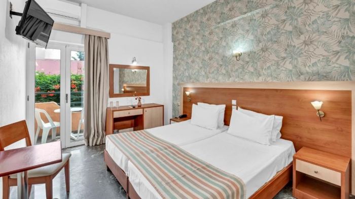 Гостите могат да се насладят на слънчева тераса, сезонен открит плувен басейн и буйна градина. Хотелът разполага с ресторант, сервиращ гръцка кухня, бар и безплатен Wi-Fi в целия хотел. Допълнителните удобства включват коли и велосипеди под наем, туристическо бюро и безплатен паркинг.