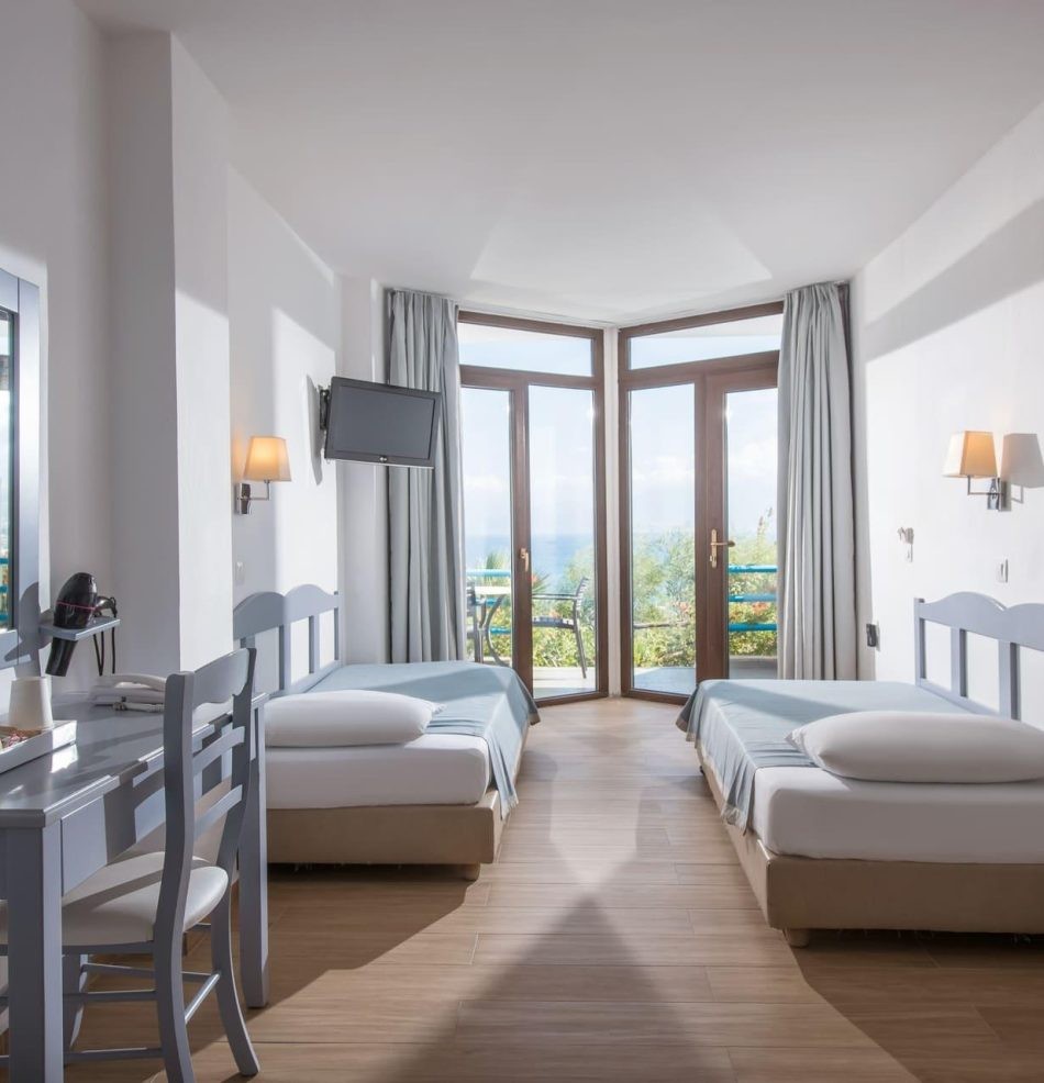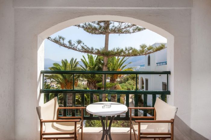 Хотелът с красива зелена площ и панорамна гледка към морето наподобява традиционно критско село. Разнообразна вечерна програма срещу допълнително заплащане. Препоръчваме го както за спокойна семейна почивка, така и за романтично бягство за двама. Гостите с ограничена подвижност и семействата с малки деца трябва да имат предвид, че хотелът е разположен на хълм и до плажа се стига от планината.
