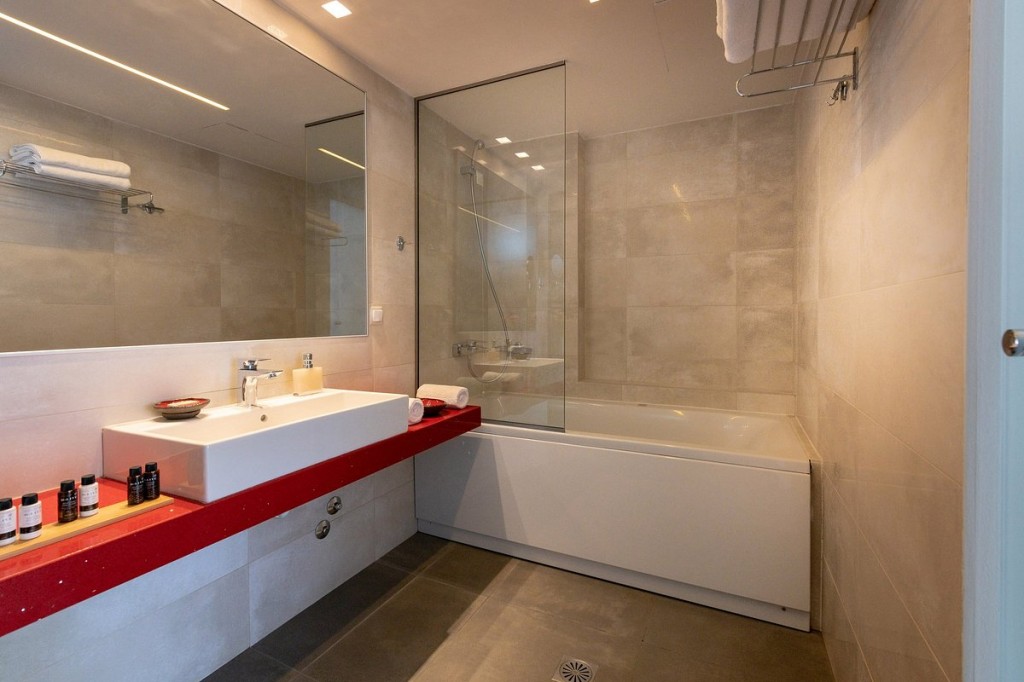 В стаите: В стаята се предоставя сейф. Спалното бельо се сменя 4 пъти седмично. Рум-сървис се предлага при поискване срещу допълнително заплащане. Стаята разполага с хладилник, аксесоари за баня, сешоар, чехли, климатик, сателитна телевизия, Wi-Fi и телефон. Стаята се почиства ежедневно. Подът е от керамични плочки. На гостите се предоставя вана или комбинация от душ/вана. Стаята разполага и с балкон или тераса.