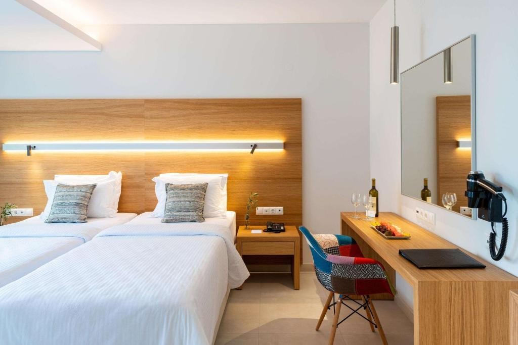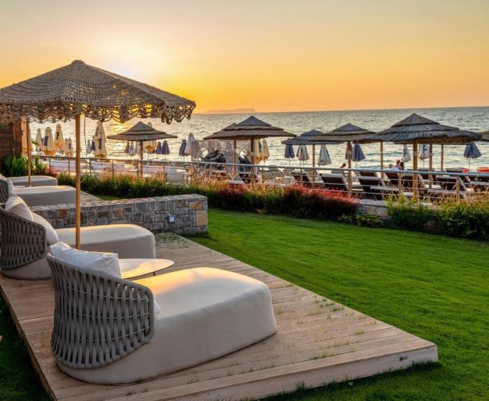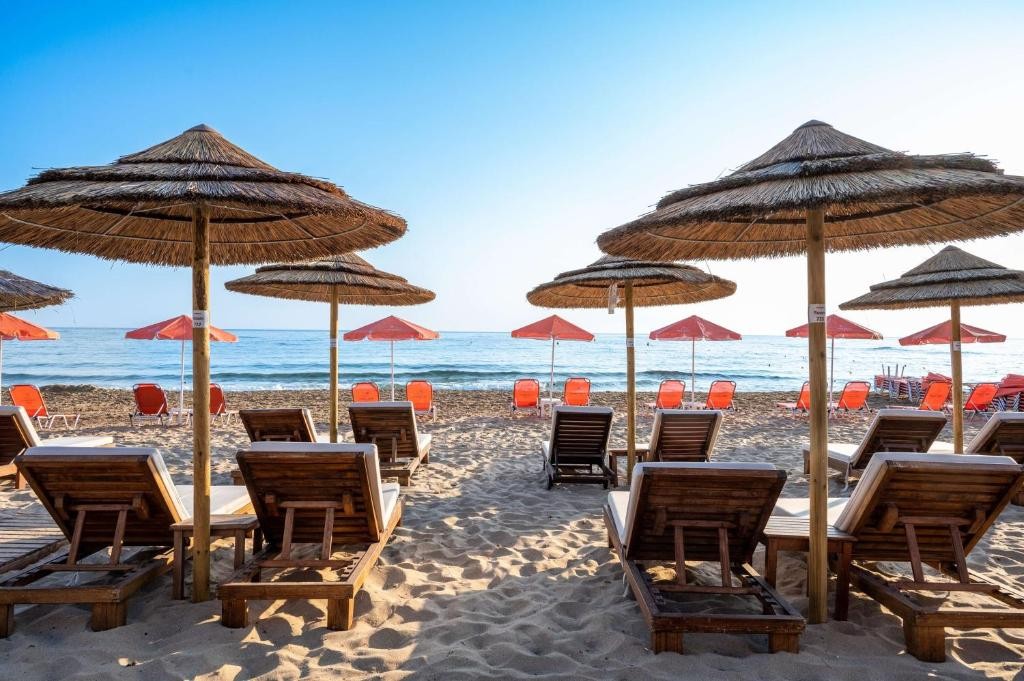 Плаж: Частен пясъчен плаж на 50 м от хотела, на първа брегова линия. Осигурени са плажни кърпи. За гостите, отседнали в категориите Suite, шезлонги и чадъри се предоставят безплатно.