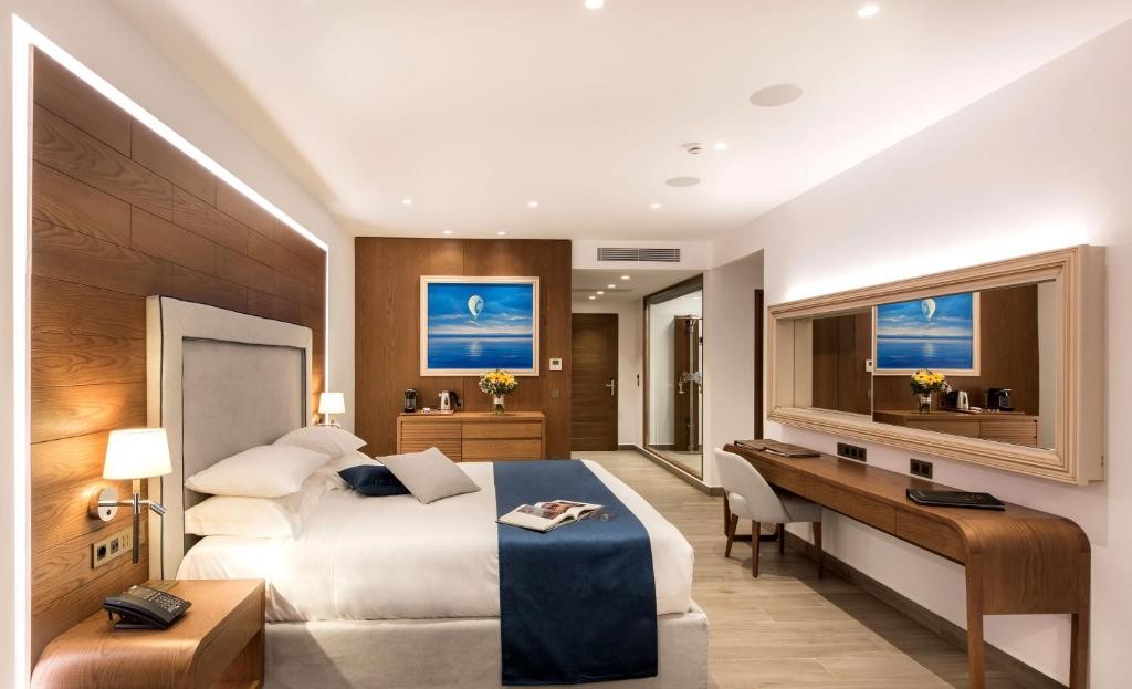 В стаите: Предлагаме стая с безплатен електронен сейф, баня с душ, ежедневна смяна на спално бельо и кърпи. Предлага се и 24-часово платено обслужване по стаите. В стаята ще намерите аксесоари за баня, индивидуален климатик, кафемашина Nespresso и телефон. Почистването се извършва ежедневно. Стаята разполага още с керамични подови плочки, халат, чехли, сешоар, балкон или тераса и удобства за приготвяне на чай/кафе. Можете да избирате възглавници. На разположение е безплатен Wi-Fi, а високоскоростната връзка е срещу заплащане. В стаята има минибар, който се предлага срещу заплащане. Предлага се и сателитна телевизия с платени канали.