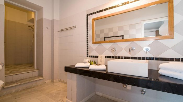 В съответствие с отличителната цикладска архитектура и с минимален декор, джуниър суитите разполагат със самостоятелни балкони с невероятна гледка към Егейско море. Освен това стаите предлагат модерни и удобни удобства.
