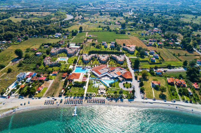 Poseidon Palace 4* се намира до красивия плаж Лептокариа, заобиколен от великолепна зеленина и цветни градини. Комплексът комбинира както фантастична гледка към морето, така и спиращи дъха пейзажи към планината Олимп.