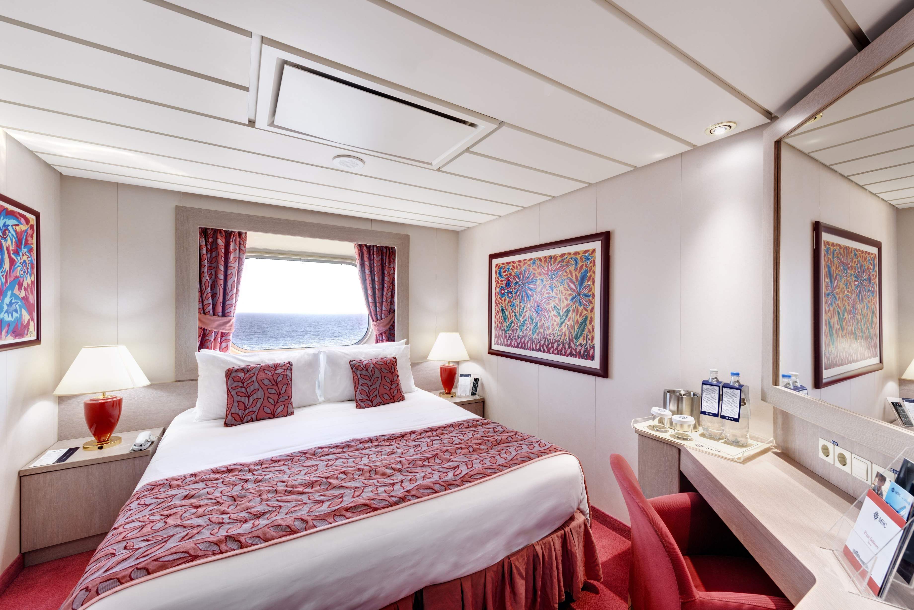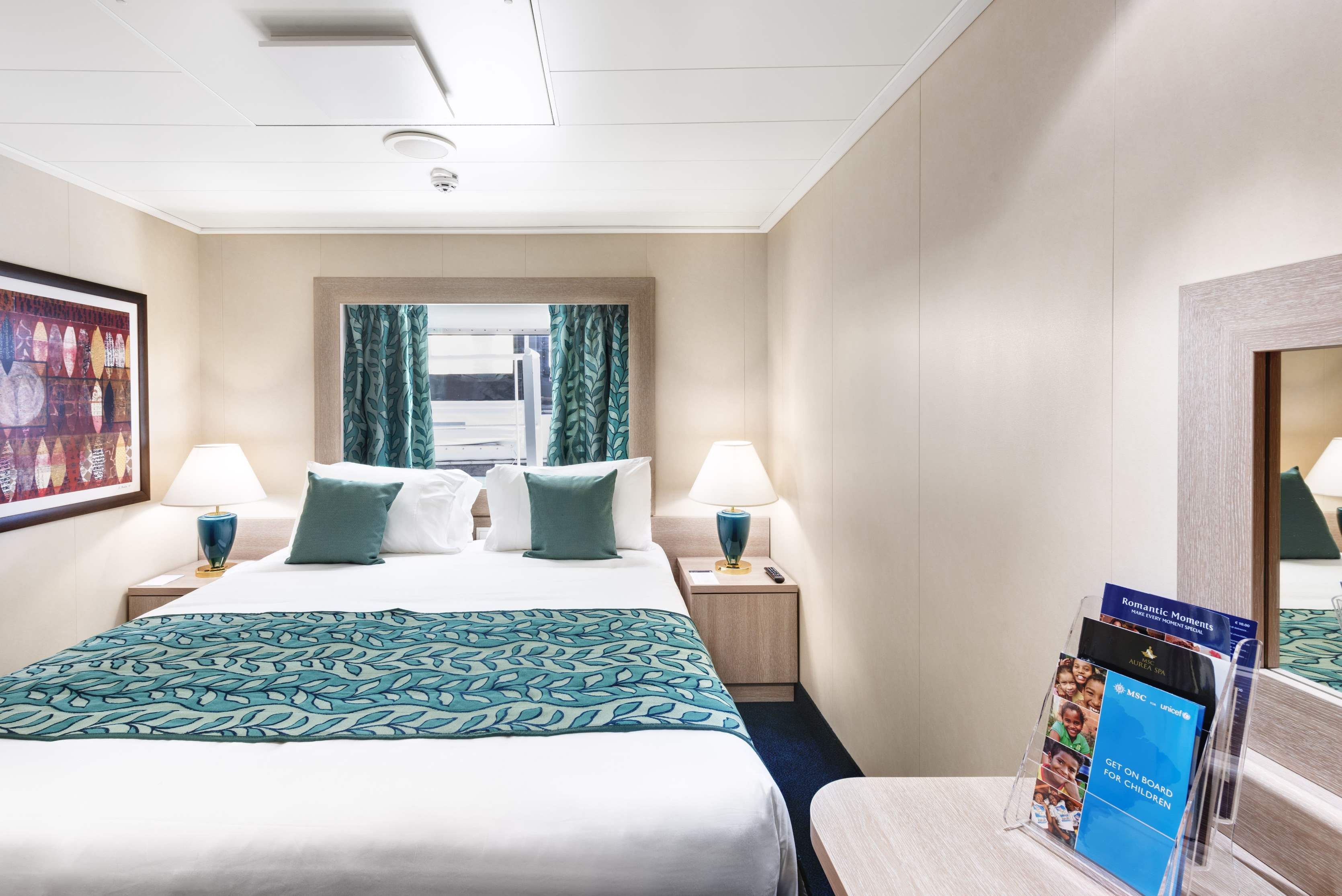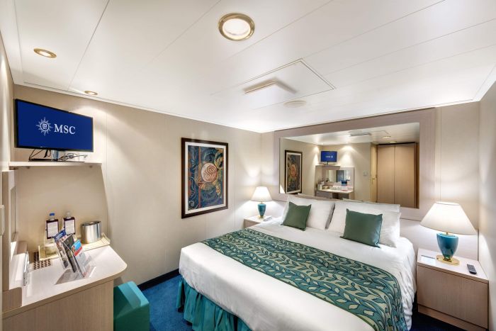 Суити, каюти с балкон, каюти с прозорец /не се отваря/, вътрешни каюти, каюти за инвалиди. Всички със сателитна ТВ, телефон, сейф, сешоар, климатик, минибар, интернет и рум сървиз срещу заплащане. Повечето разполагат с диван, който се превръща в трето легло или 2 легла една над друго за настаняване на 2 деца.