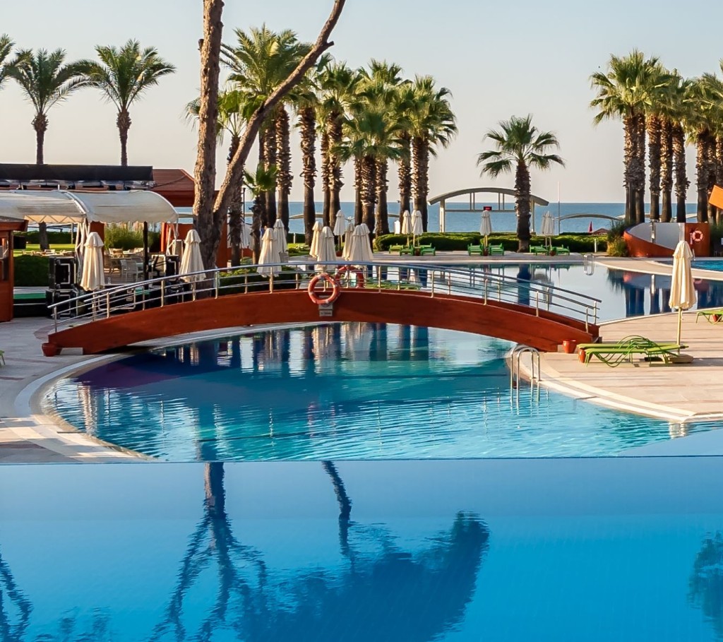 На територията на хотела: Основен ресторант (има диетично и вегетарианско меню, детски кът с бюфет), 6 ресторантa la carte (италиански, турски, френски, средиземноморски, далекоизточен, с предварително записване - платени, барбекю - безплатен), 8 бара (един от тях работи 24 часа), 6 открити басейна (един от тях е за Villa Junior Suite), 1 закрит басейн, 4 водни пързалки, Спа център, магазини, фризьорски салон, лекарски кабинет, химическо чистене, бизнес център.