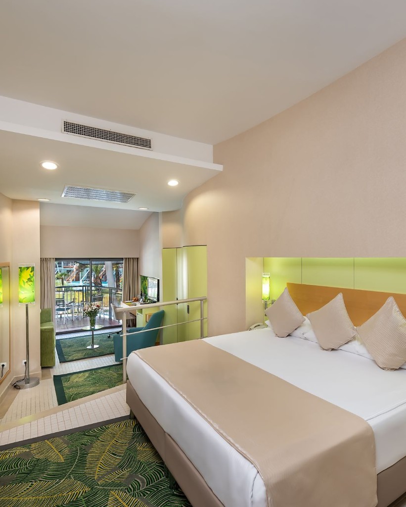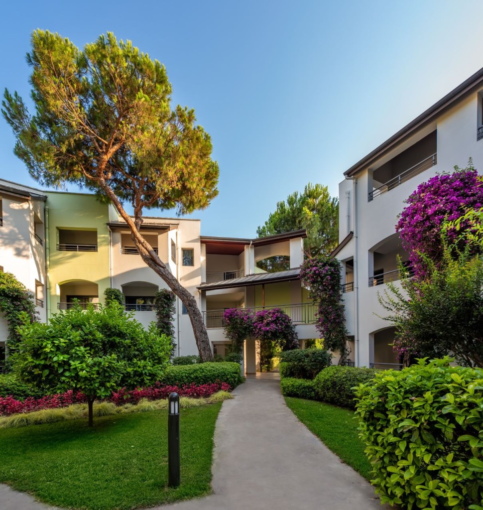В стаите: Състои се от основна 5-етажна основна сграда Hotel (70% от стаите са с гредка море), 3-етажна сграда Villa Standard Garden Room с гледка към градината и стаи от категория Villa Junior Suit. Хотелът разполага с общо 358 стаи, които са оборудвани с централен климатик, телевизор, телефон, баня с вана или душ, халат и чехли, сет за кафе и чай, кошница с плодове: в деня на пристигане (и вино), сешоар, сейф 9безплатне), мини-бар безплатно (безалкохолни напитки и бира - ежедневно зареждане), Wi-Fi (безплатно), room service: платено (за обслужване; безплатно за Villa Junior Suite Deluxe Suite Grand Deluxe Suite от 22:00 до 07:00-плаща се поръчката; алкохолни напитки – 24 часа, платено), под - мокет (мокет (Villa Garden – ламинат или мокет, Villa Junior Suite – теракот). Почистване на стаите - ежедневно, смяна на спално бельо - 3 пъти седмично.