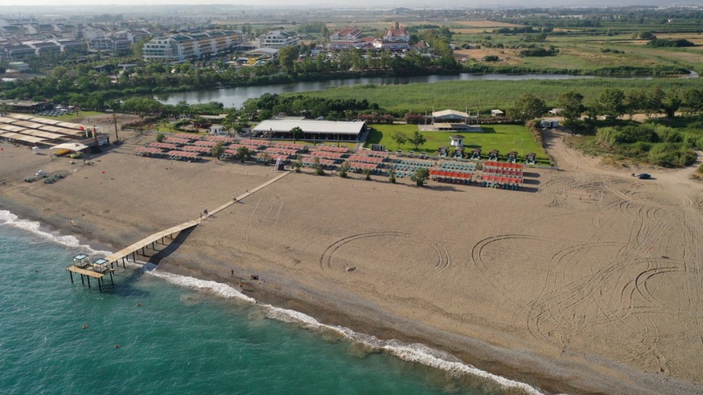 Собствен плаж пясъчно-каменист, на 400 метра от хотела. Дължина на плажа: 500 м. Безплатен транспорт до плажа (в делнични дни 09.00-00.00, в почивните дни 09.30-17.30). Шезлонги, тенти, матраци, плажни кърпи (депозит) - безплатно. Вход в морето - пясък и камъчета. Душ, кабини за смяна, спасител на плажа. Пристанище (работи от 01.05 в зависимост от метеорологичните условия).