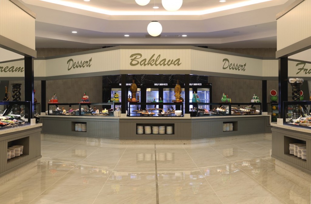 Основен бюфет ресторант, 4 а ла карт ресторанта (турски и италиански - с предварително записване, за целия престой се полага 1 посещение на едни от тях - безплатно; рибен и мексикански - платени), 8 бара, сладкарница, дискотрека, 2 открити басейна, 1 закрит басейн, 3 водни пързалки, СПА център, магазини, фризьорски салон, лекарски кабинет.