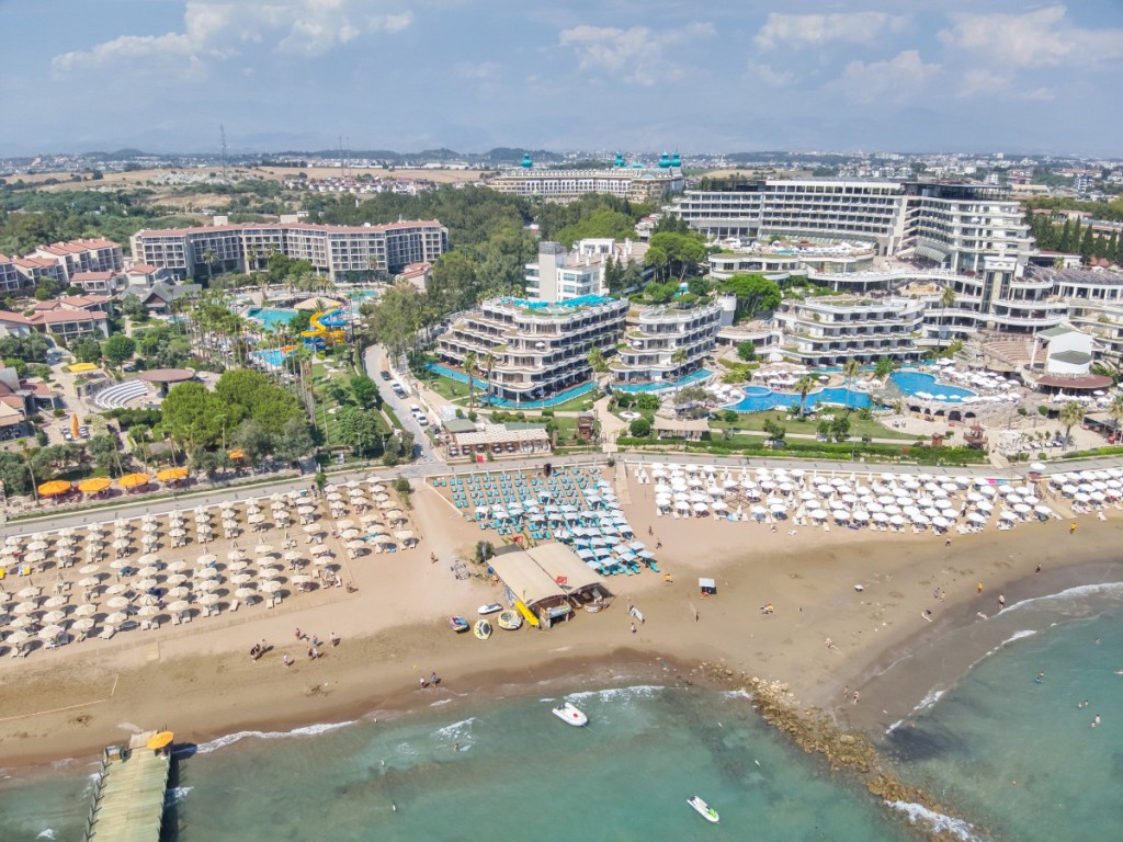 Хотелът е разположен на брега на морето, заобиколен от поддържани градини. На територията има няколко басейна с обзаведена слънчева тераса, голям воден парк с водни пързалки за възрастни и деца. Хотелът разполага със собствен пясъчен плаж с шезлонги и чадъри. Хотелът разполага с два основни ресторанта, които сервират шведска маса, а ла карт ресторанти, сладкарски бюфет с бърза храна, гьозлеме и суши. Заслужава да се отбележи а ла карт гурме ресторант, където се допускат само възрастни. Гостите могат да си поръчат освежаващи алкохолни и безалкохолни напитки на баровете.