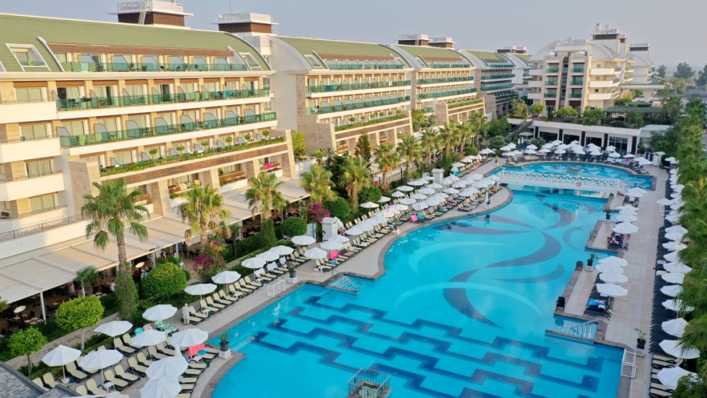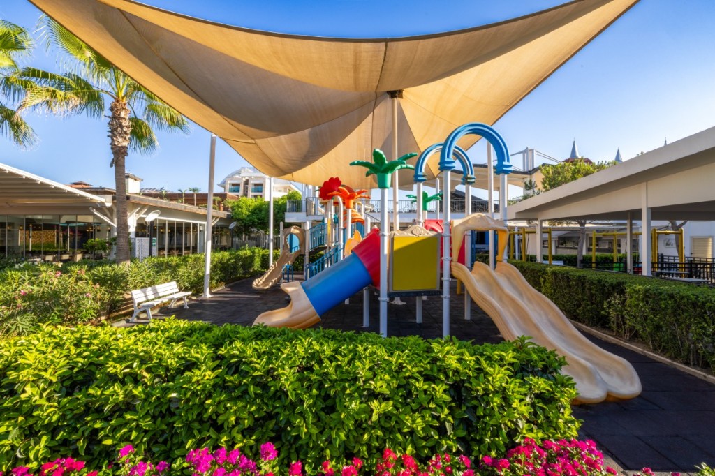 Курортът и спа носи името си от кристално чистите води на Средиземно море. Намира се на брега на морето и разполага със собствен пясъчен плаж с дължина 500 метра. Курортът разполага с 3 открити басейна, аквапарк с водни пързалки и СПА център. Баровете предлагат богат асортимент от алкохолни и безалкохолни напитки. Има и 4 ресторанта, предлагащи турска, далекоизточна, италианска и американска кухня, включваща турска баня, сауна и парна баня. Те също така предоставят масажни и козметични услуги. Хотелът разполага с игрище за плажен волейбол, тенис корт, фитнес център и игрище за мини голф. На място има детски мини-клуб, детски басейн, детска площадка, мини-дискотека и мини-кино. През целия ден има анимационни програми за деца и възрастни. Хотелът е подходящ за семейна, романтична или младежка почивка.