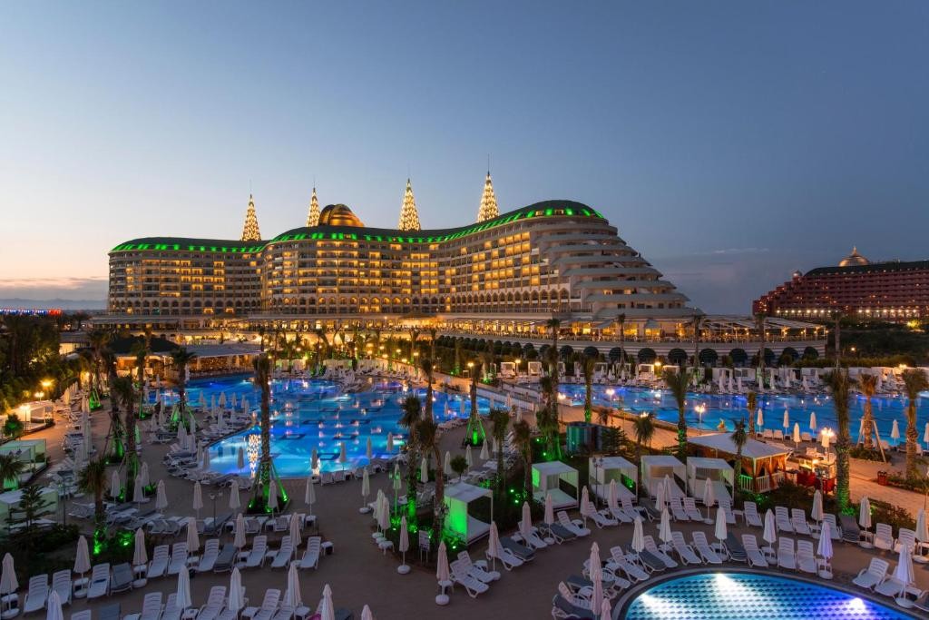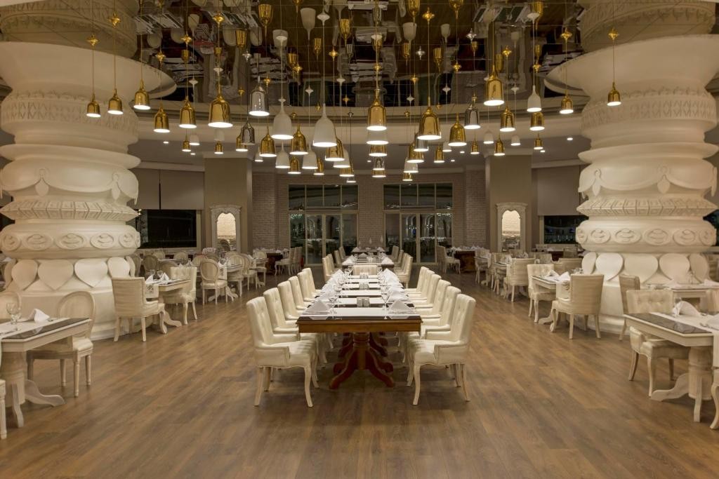 На територията на хотела: Основен ресторант, 8 а - ла - карт ресторанта (италиански, френски, гръцки, мексикански, далекоизточен, османски, рибен, ресторант месо и вино - с предварителна резервация, при минимум 7 нощувки - безплатно), 5 бара, 3 открити (оновен, релакс и с пързалки) и 1 закрит басейн, дискотека, аквапарк, лунапарк, СПА център, магазини, конферентна зала, Wi-Fi (безплатен).