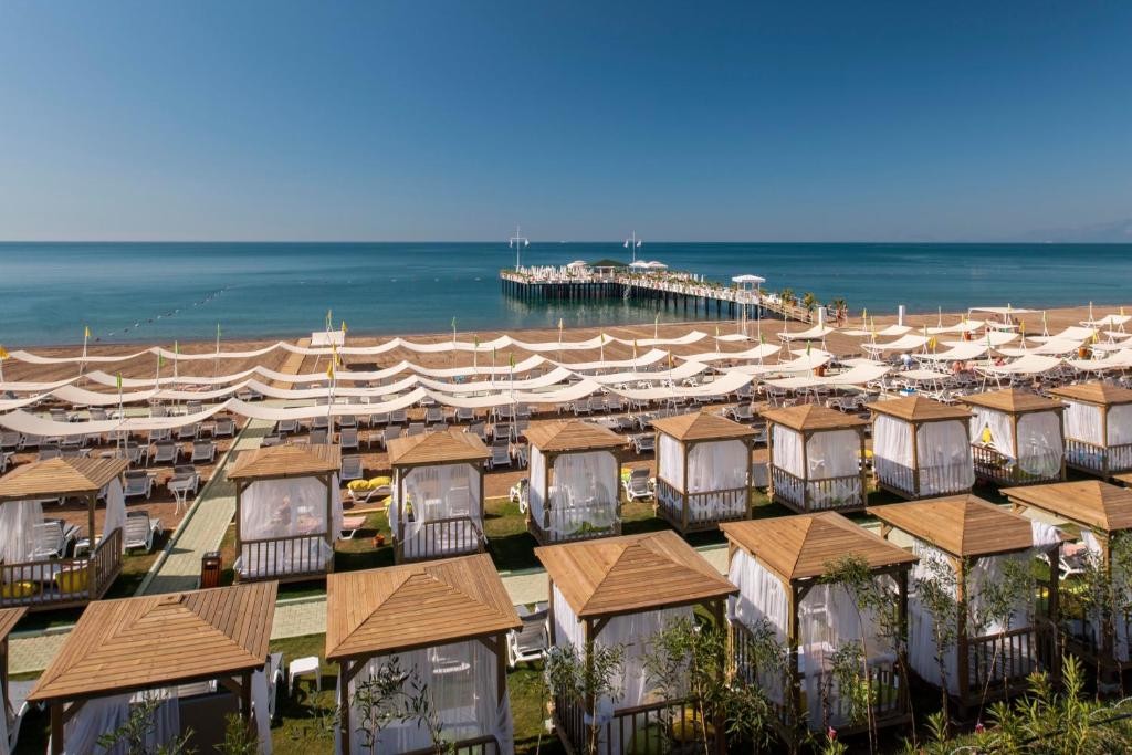 Разположение: Намира се на 15 км. от летище Анталия, на 10 км. от центъра на Анталия, в района на Лара, на брега на морето. Посторен през 2012 г., с обща площ 54.000 м2., реновиран 2014 г.
