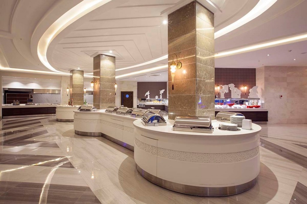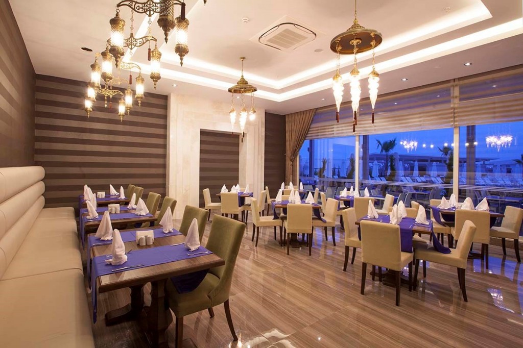 На територията на хотела: Основен ресторант, 2 а-ла-карт ресторанта (едно безплатно посещение при престой 7 нощувки - с предварителна резервация), снек ресторант, сладкарница, бар и нощен клуб, голям открит басейн, закрит отопляем басейн (само през зимен сезон), 3 водни пързалки, СПА център, търговски обекти, конферентна зала, безжичен интернет, паркинг. Дрес код за всички ресторанти.