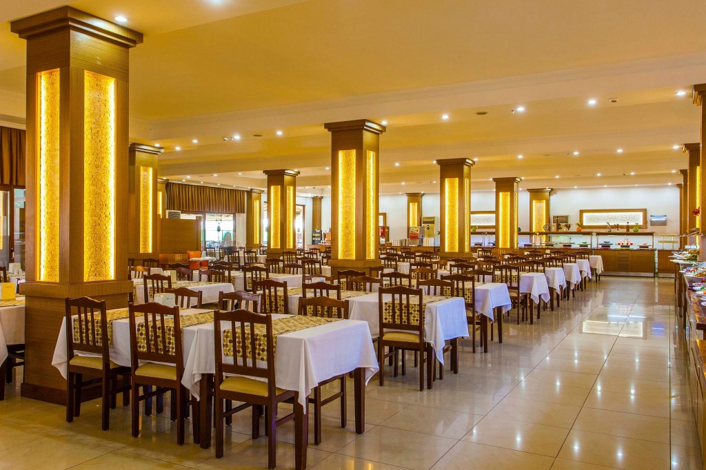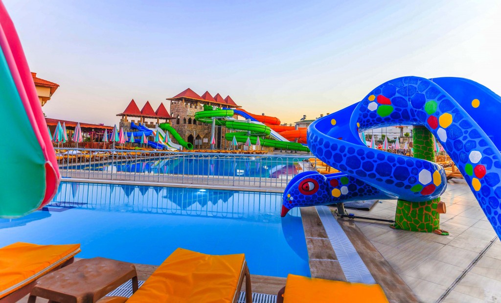 Хотелът се намира директно на брега на морето. Разполага с открит басейн, СПА център и безплатен Wi-Fi. Хотелът разполага с а-ла-карт ресторанти и лоби бар. Хотелът разполага и с аквапарк, детски басейни с водни пързалки, тераси за слънчеви бани, спортна площадка и футболно игрище. Басейнът за възрастни разполага с 4 водни пързалки, а детският с 2 малки пързалки. Деца на възраст от 4 до 12 години са добре дошли да използват мини клуба и детската площадка. Спа центърът включва сауна, турска баня и джакузи.