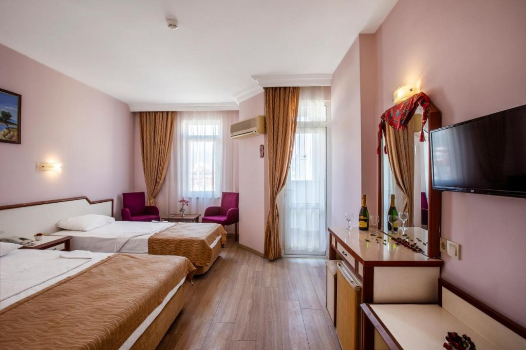 Този хотел се намира в самия център на Алания и предлага комфортно настаняване. Предлага стандартни и фамилни стаи, открит басейн и ресторант.
