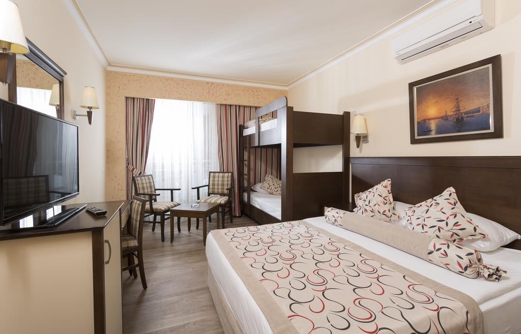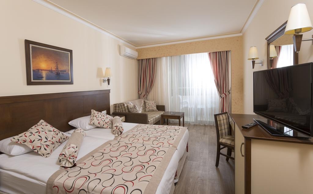 В стаите: Хотелът се състои от 4 сгради, блокове- A, B, C и D. Блоковете A, B, C ( построени през 2007 г. ) са пететажни и имат асансьор. Блок D ( построен през 2011 г. ) е двуетажен и е без асансьор. Разполага с общо 208 стаи: 91 стандартни стаи, стилно и модерно обзаведени, разполага с климатик, сейф под наем, душ, сешоар, тоалетна, балкон, минибар, LCD телевизор (сателит), телефон и ламиниран паркет. ; 35 фамилни стаи - Стаята разполага с родителска спалня и допълнителна детска спалня, която е разделена с междинна врата. Стаите са обзаведени в модерен стил и разполагат с климатик, сейф под наем, душ, сешоар, тоалетна, балкон, минибар, LCD телевизор (сателит), телефон и ламиниран паркет; Фамилна стая с двуетажно легло - В стаята има допълнително двуетажно легло и разполагат с климатик, сейф под наем, душ, сешоар, тоалетна, балкон, минибар, LCD телевизор (сателит), телефон и ламиниран паркет.