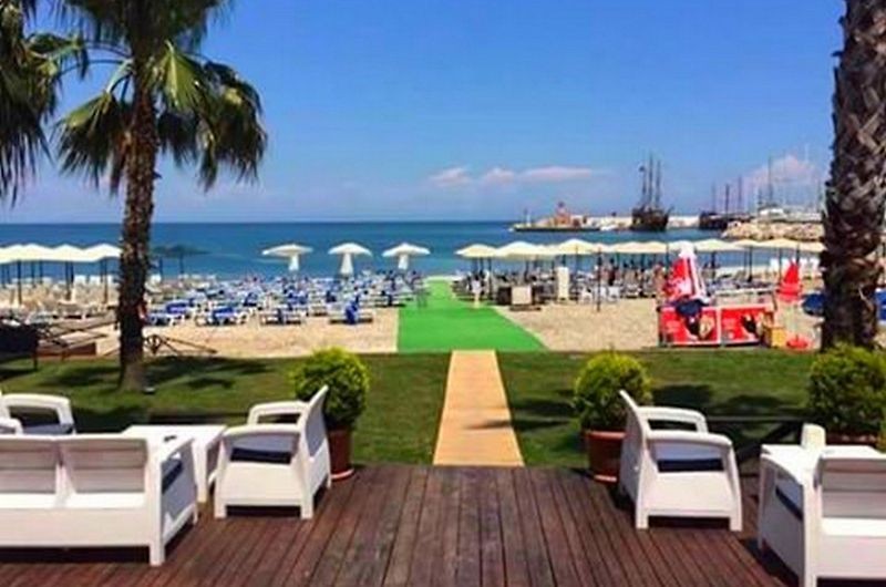 Плаж: Обществен чакълест плаж на 900 м от хотела (3-та линия). Чадъри, шезлонги, матраци, хавлии - срещу заплащане. Между хотела и плажа има път и алея. Има трансфер до плажа срещу заплащане. Дължината на плажа е 50м.