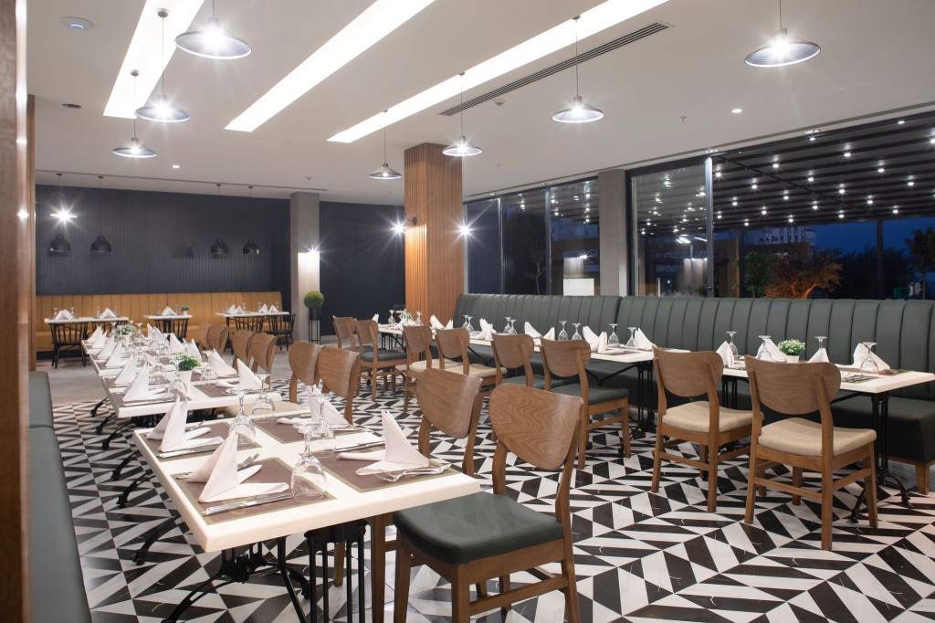 Основен ресторант, 2 а-ла-карт ресторанта (интернационален, италиански – срещу заплащане, с предварителна резервация); (ресторант при аквапарка и ресторант на плажа – срещу заплащане), 6 бара (бар на плажа и кафене – срещу заплащане), 3 открити и 1 закрит басейн, аквапарк с 4 водни пързалки, СПА център, дискотека, магазини, 1 конферентнa залa.