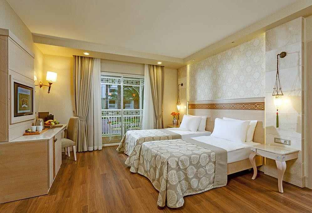 266 Deluxe Room (32-37 м2), 52 Deluxe Superior Room (спалня, единично легло, кът за сядане, 64-66 м2), 50 Deluxe Pool Room (спалня, единично легло, плодове и вино, баня с джакузи, луксозна козметика, директен достъп към общ басейн, 70-78 м2), 108 Deluxe Family Room (2 спални, 1 баня, 55-63 м2), 32 Deluxe Superior Family Room (2 спални, 2 бани – 90 м2), 30 Deluxe Superior Plus Family Room (2 спални, 2 бани, плодове и вино, луксозна козметика – 100 м2), 30 Deluxe Pool Family Room (2 спални, 2 бани, плодове и вино, луксозна козметика, директен достъп към общ басейн, 130-136 м2), 3 Presidential Pool Suite Type A (2 спални, кухня, бани, джакузи, луксозна козметика, плодове и вино, VIP минибар, директен достъп към общ басейн, плажна кабана, 1 безплатно посещение на а-ла-карт ресторант, изглед море – 120 м2), 3 Presidential Pool Suite Type В (2 спални, 2 бани, джакузи, луксозна козметика, всекидневна, кухня, плодове и вино, VIP минибар, директен достъп към частен басейн, плажна кабана, 1 безплатно посещение на а-ла-карт ресторант – 170 мм).