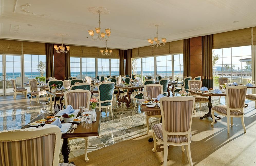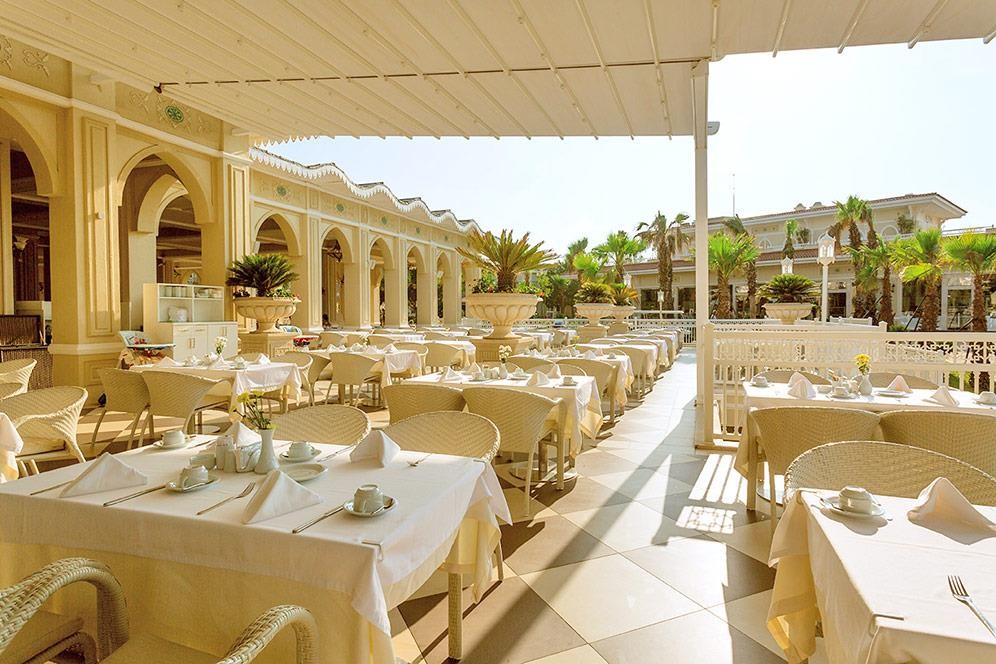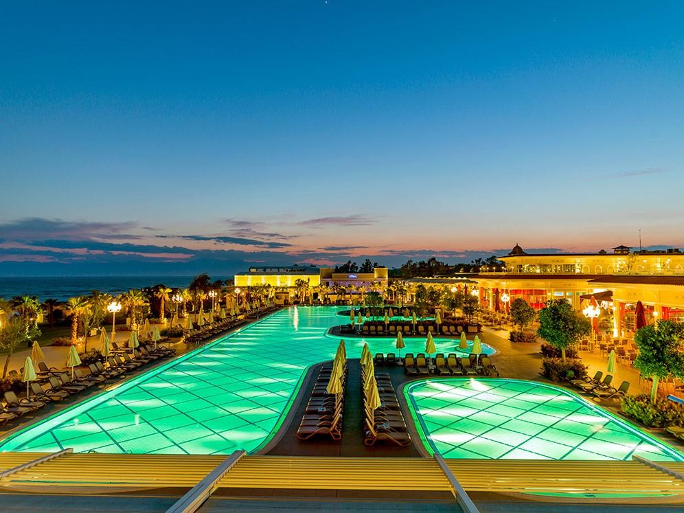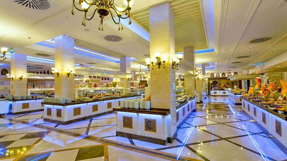 На територията на хотела: Основен ресторант, Aqua ресторант, ресторант на плажа, 3 а-ла-карт ресторанта (турски, интернационален, рибен – срещу заплащане, с предварителна резервация), снек ресторант, гьозлеме, сладкарница, 10 бара, кафетерия, открит диско бар, 2 открити и 1 закрти басейн, аквапарк с 20 пързалки, 8 професионални тенис корта, амфитеатър, СПА център, магазини, паркинг.